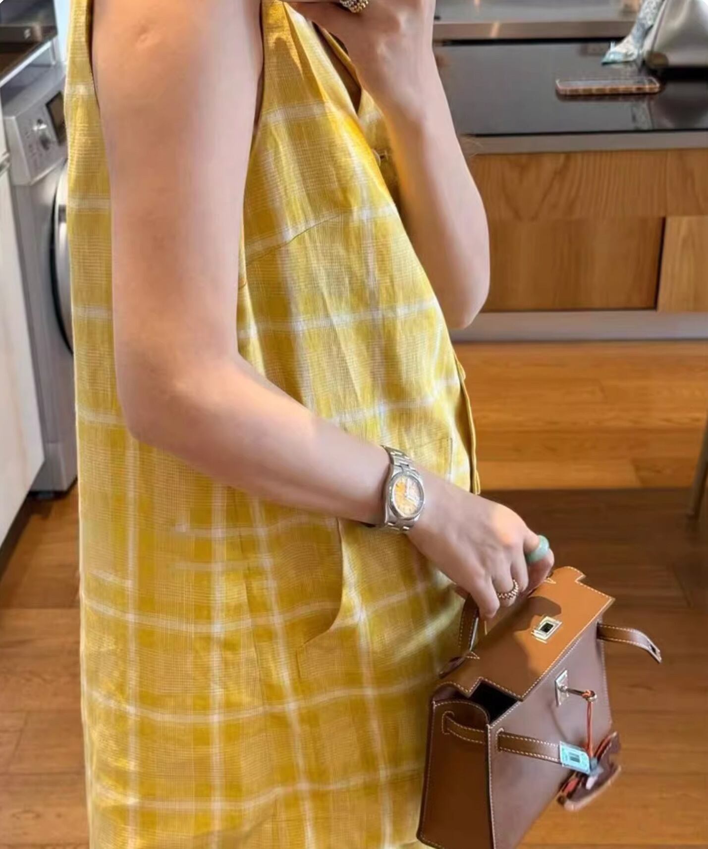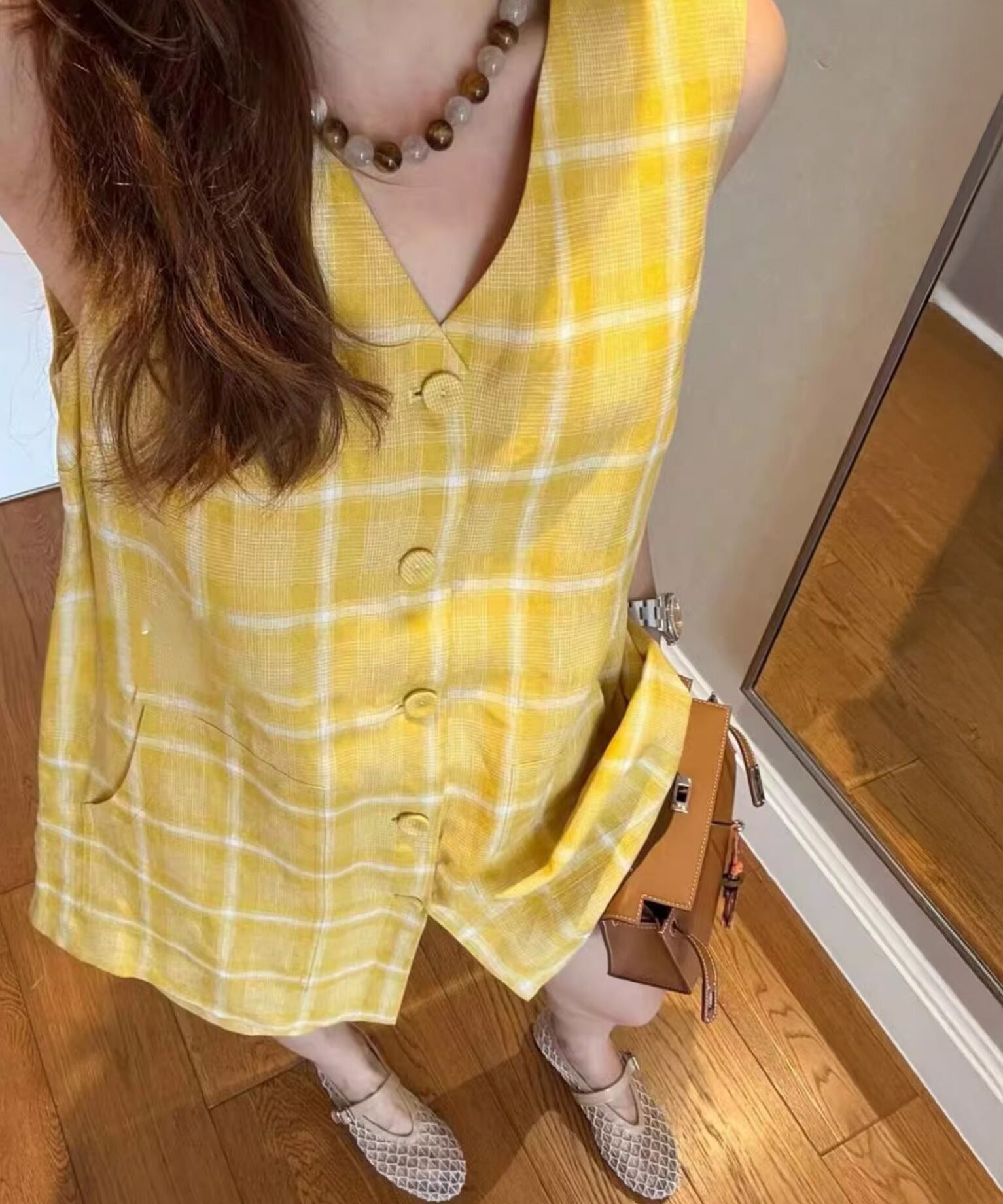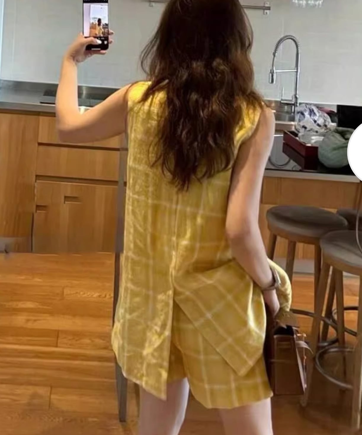 イエローチェックノースリーブベスト+ショートパンツ 【セットアップ】 R0083