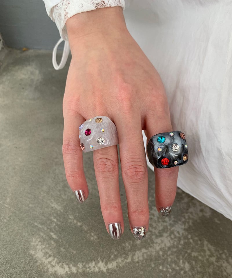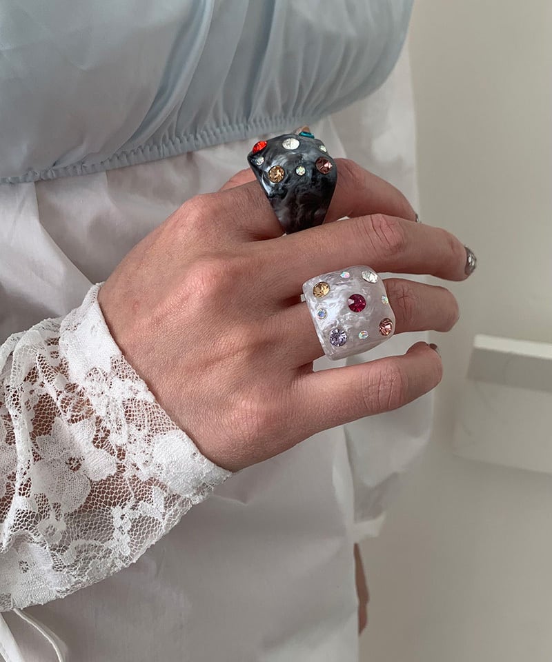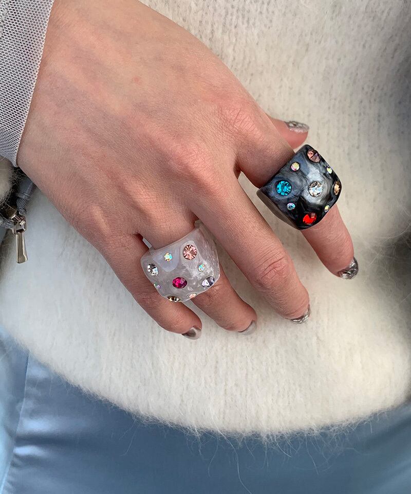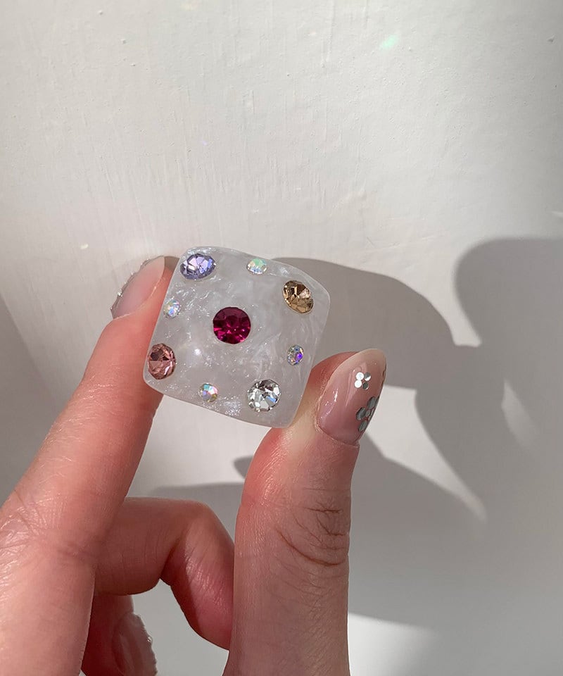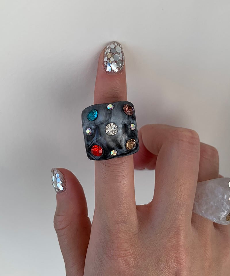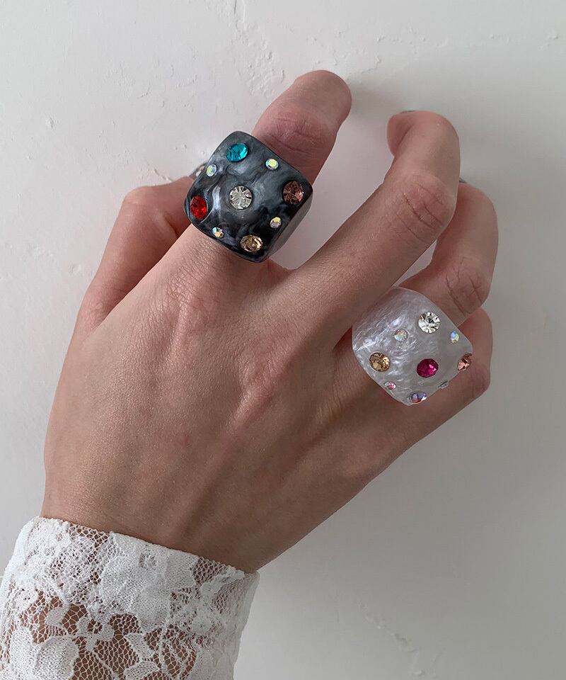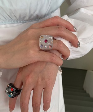 スクエアフォルムに繊細な輝きを閉じ込めたデザインリング。