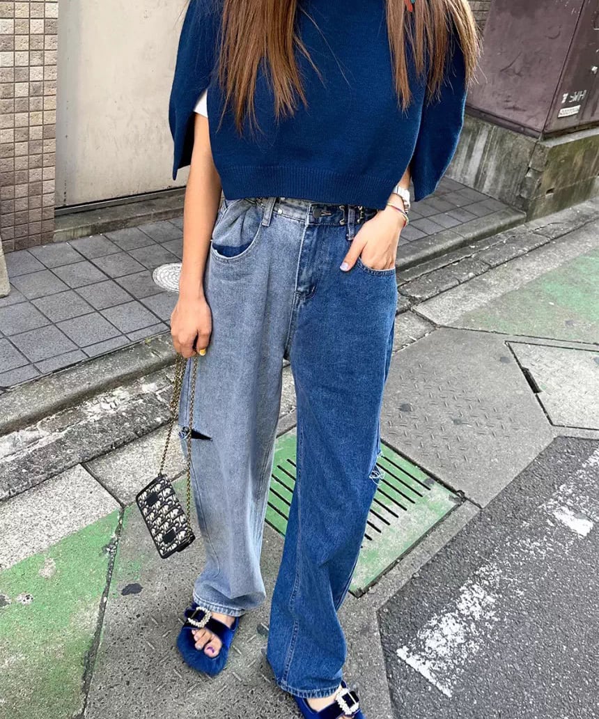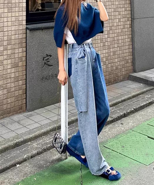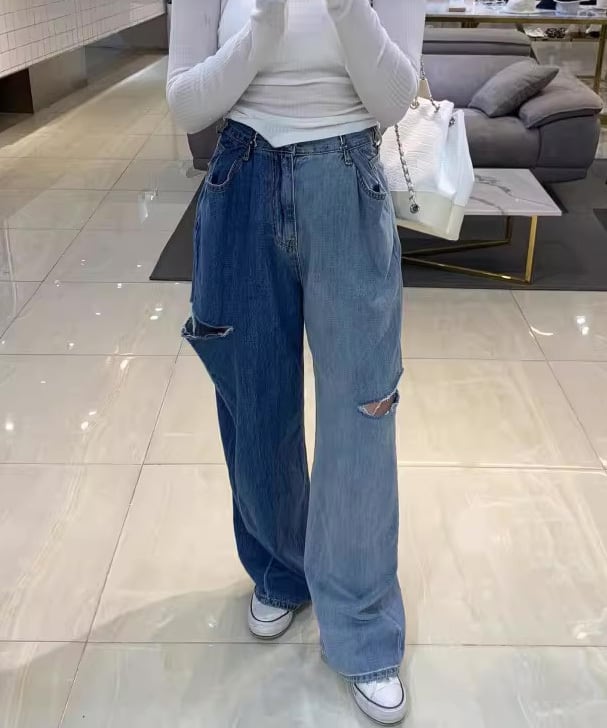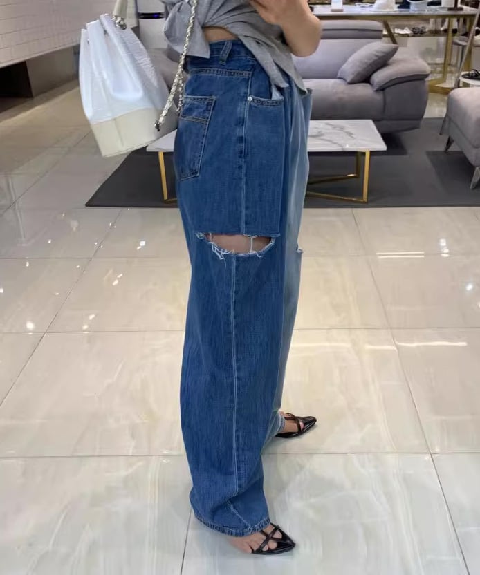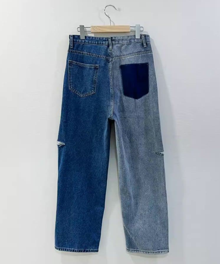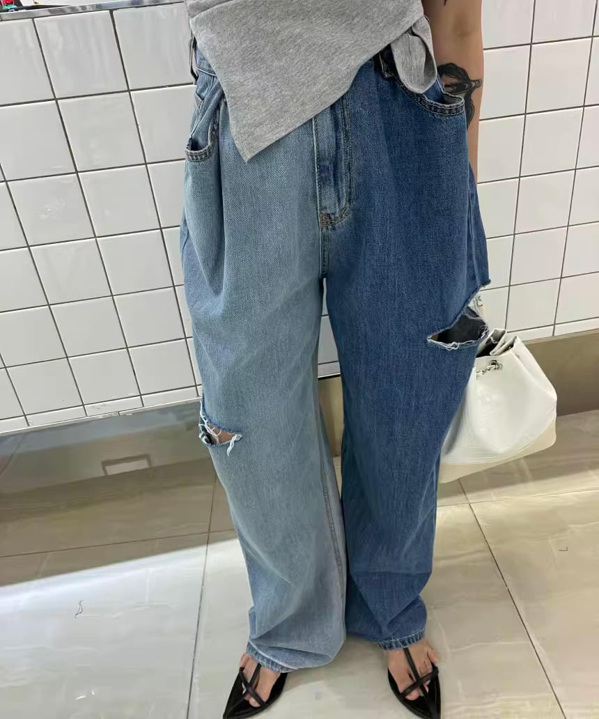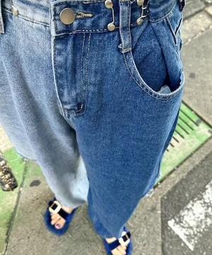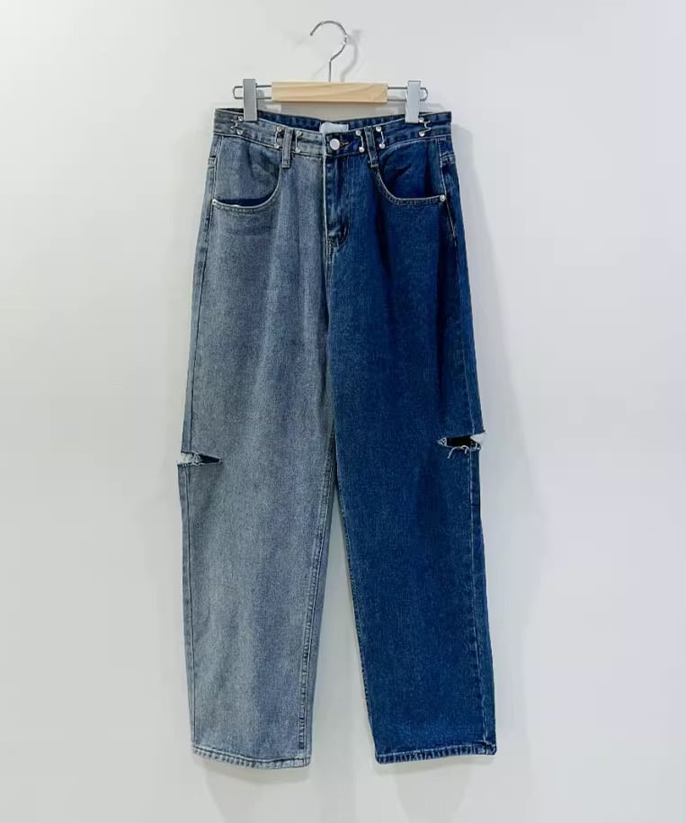 アシンメトリーダメージデニムパンツ R0024