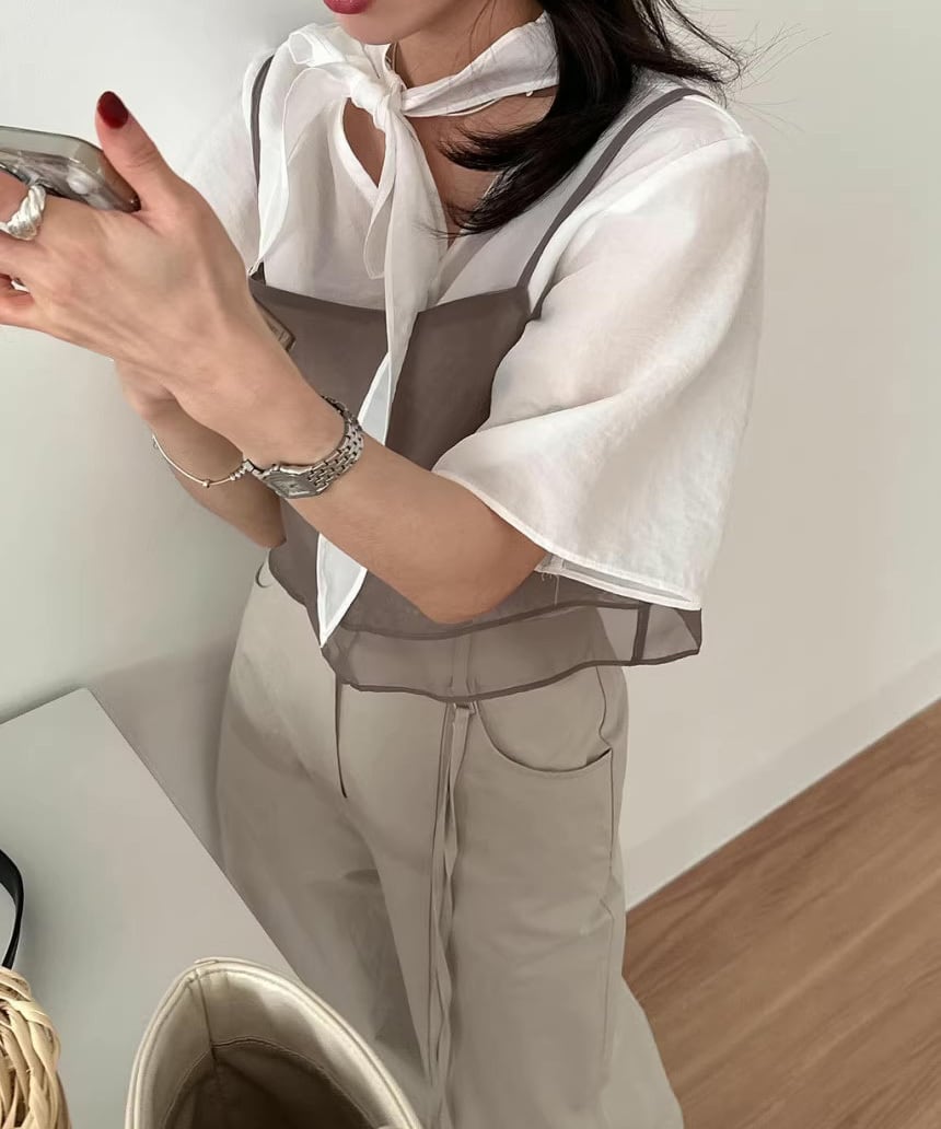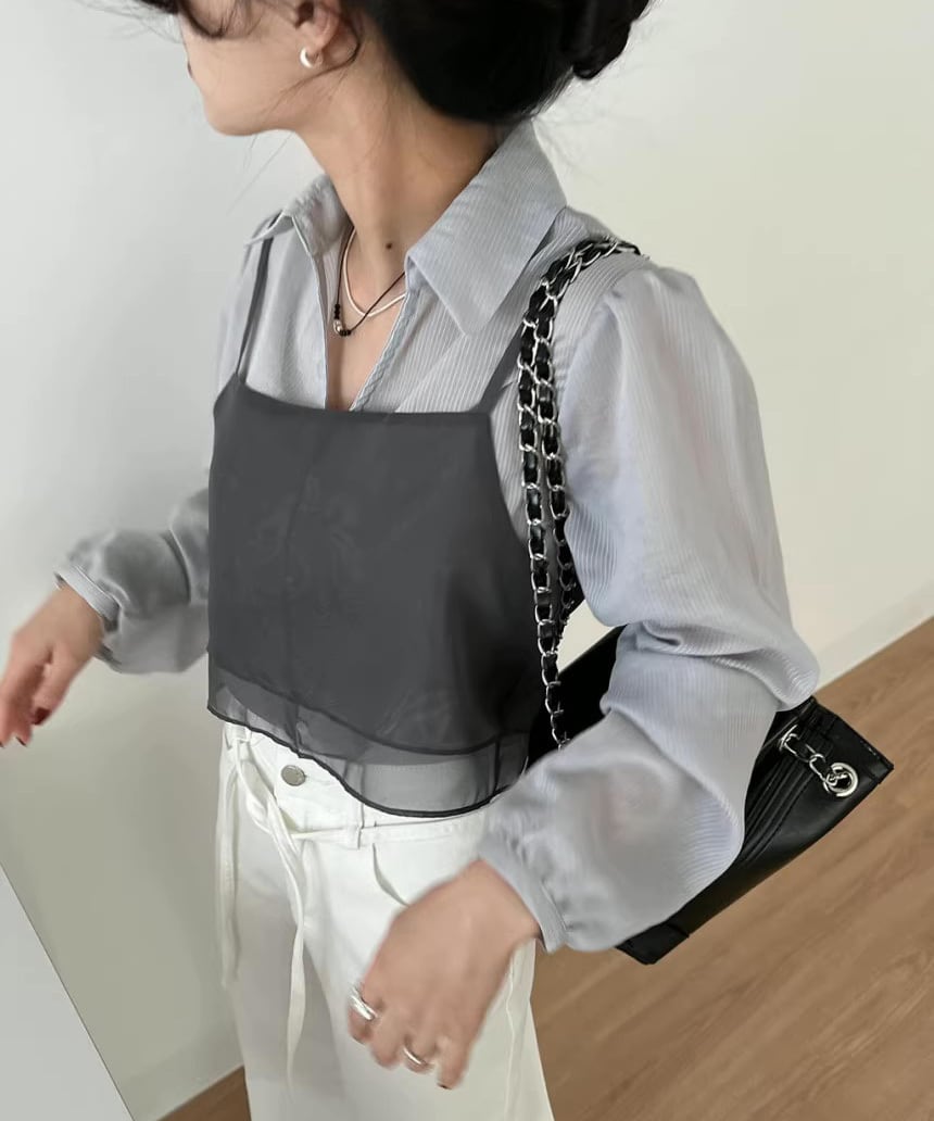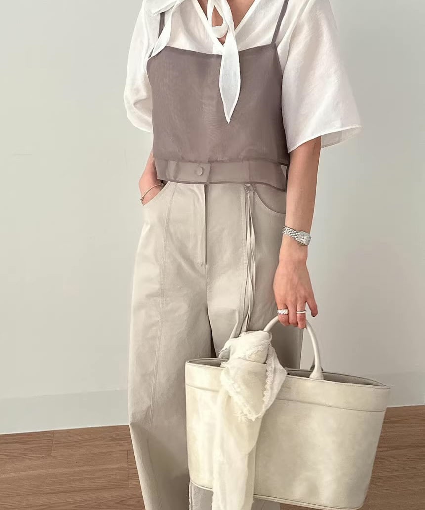 Tシャツやタンクトップとのレイヤードがおすすめです。