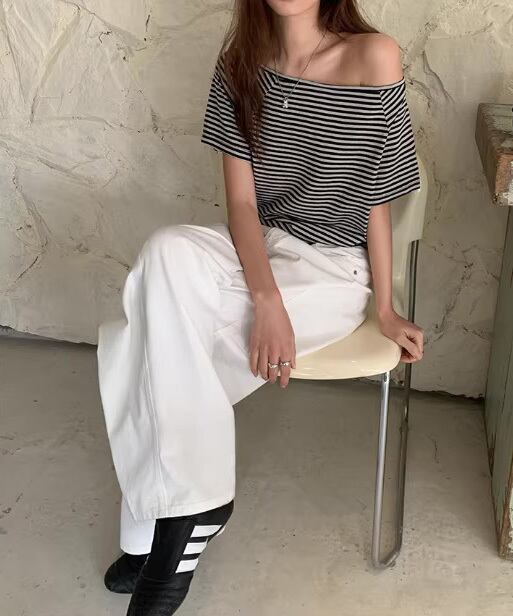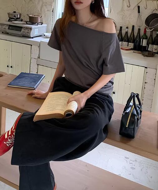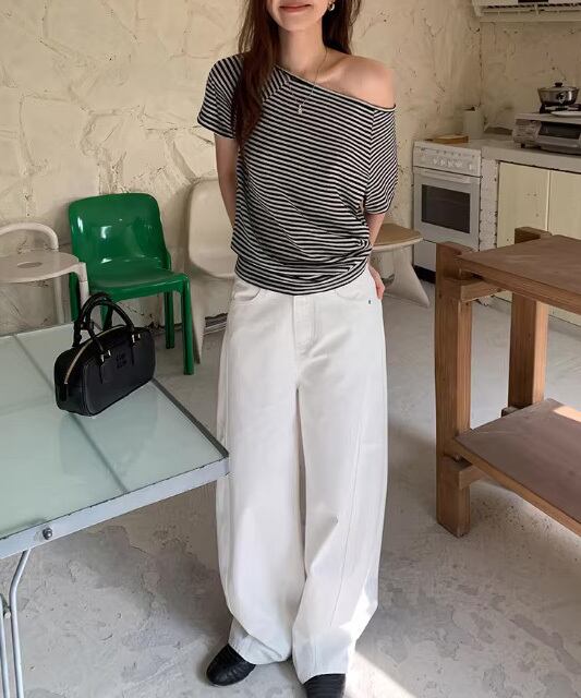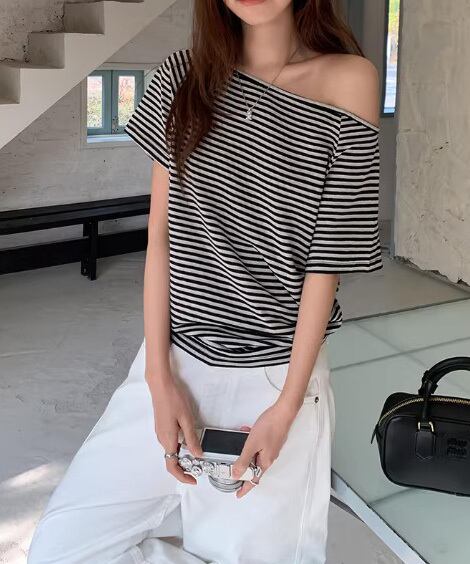 程よい肌見せが叶う、ワンショルダーデザインのカットトップス。