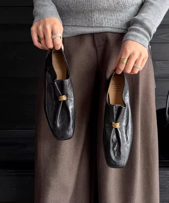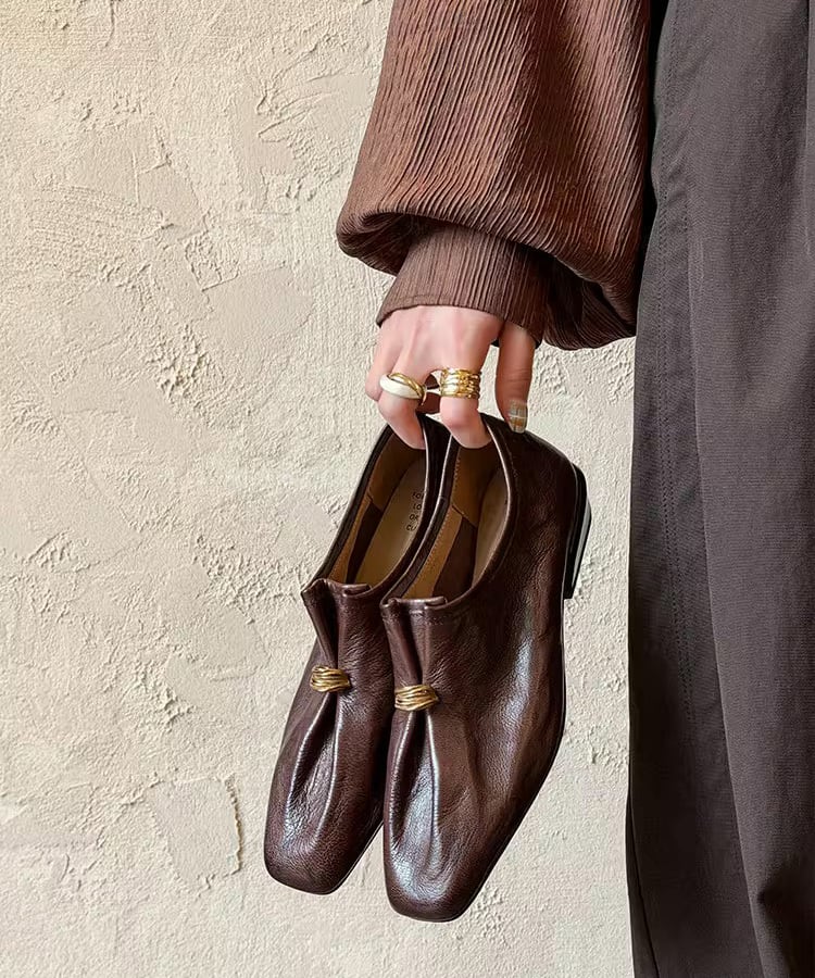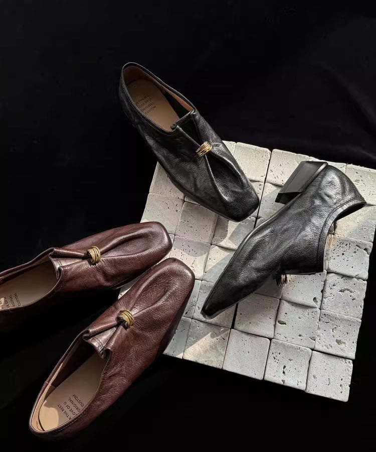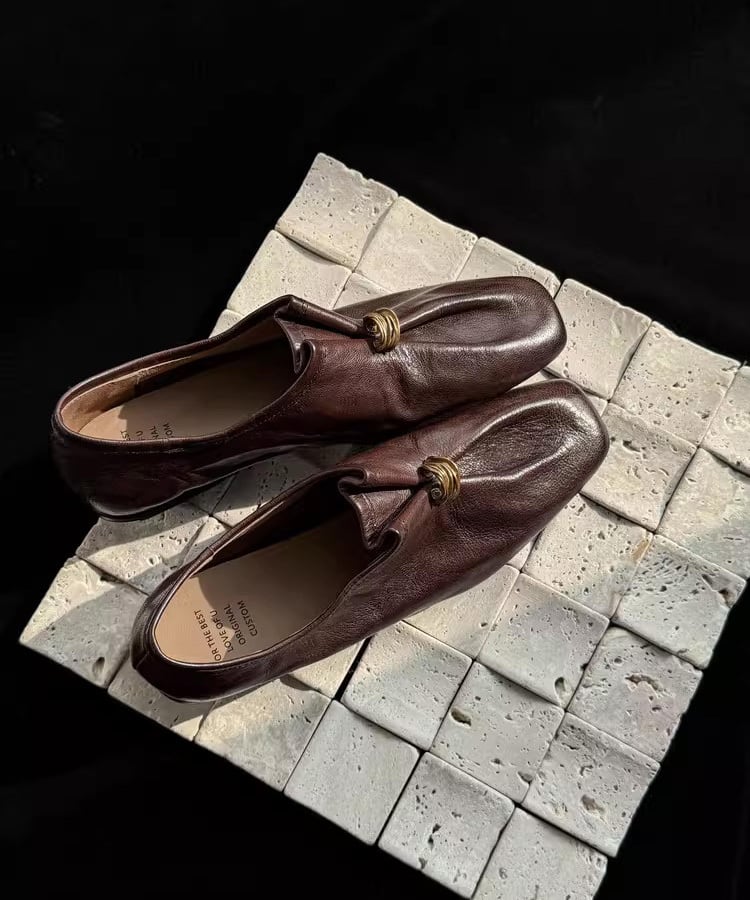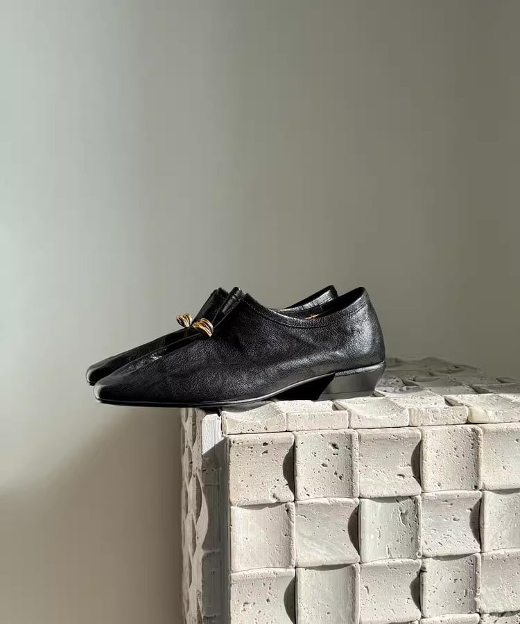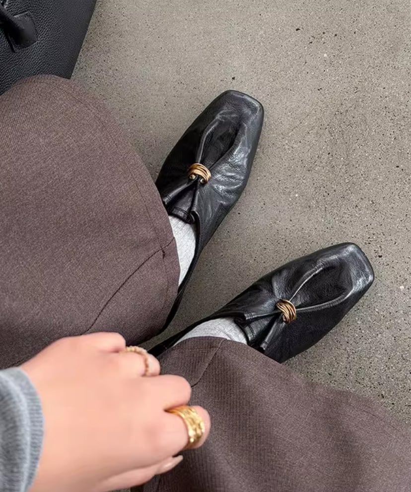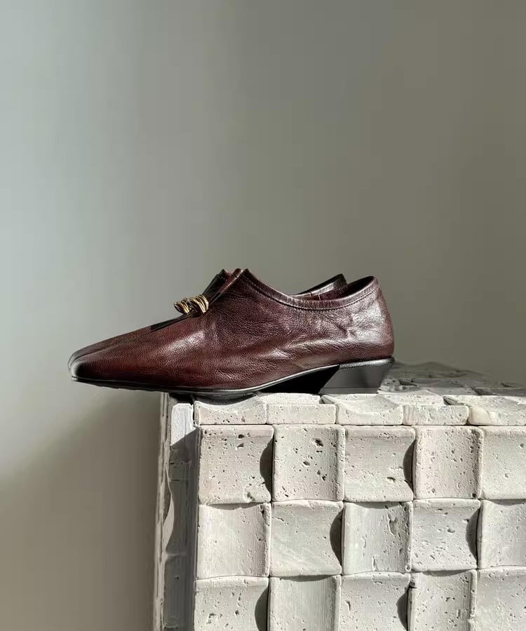 ゴールドリングがアクセントになったレザーローファー。