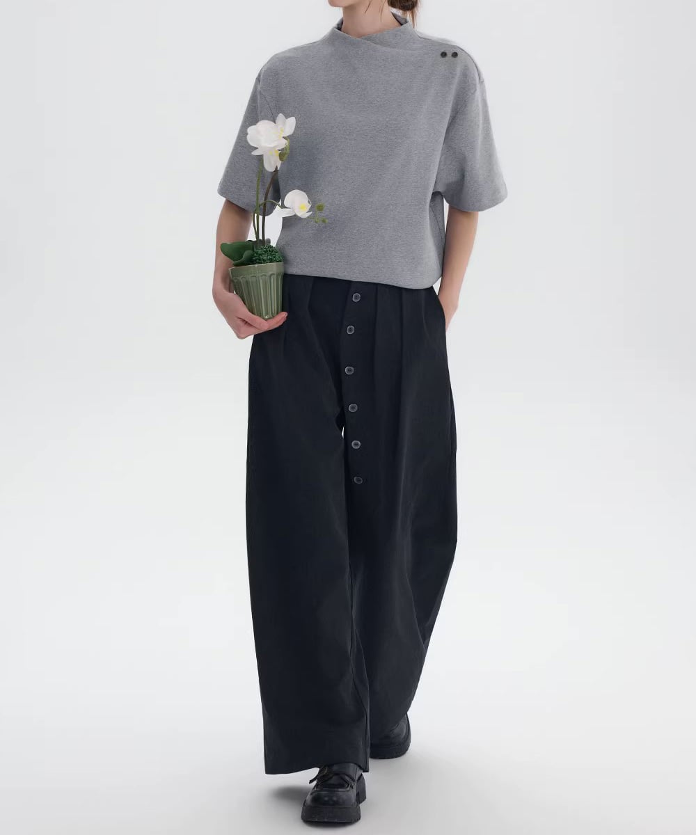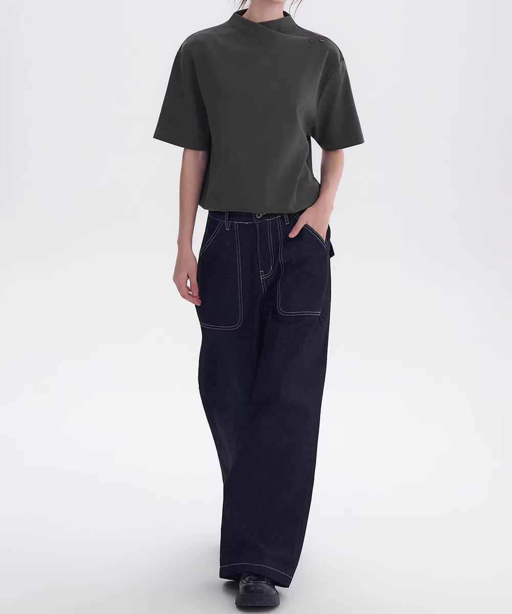 スタンドカラーミニマルTシャツ R0156