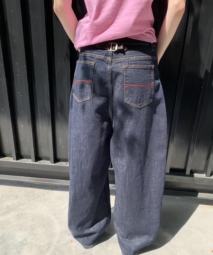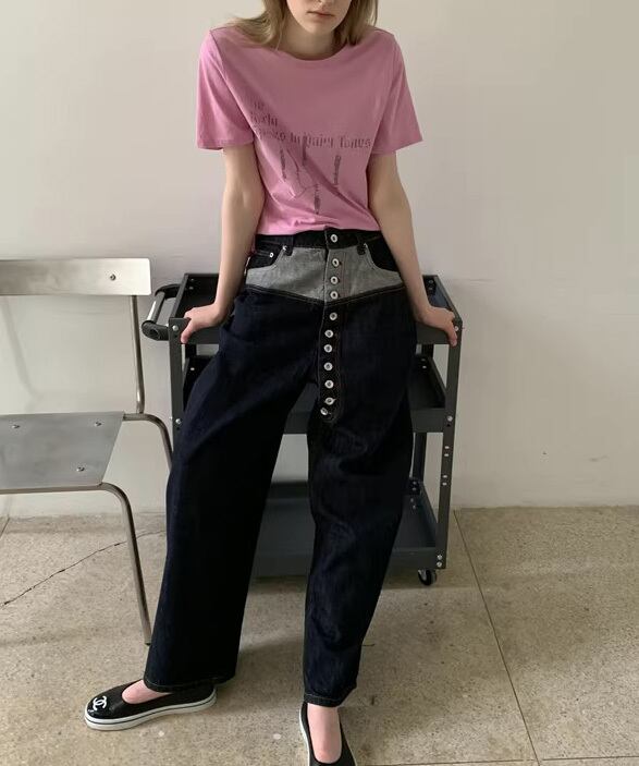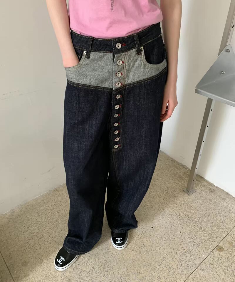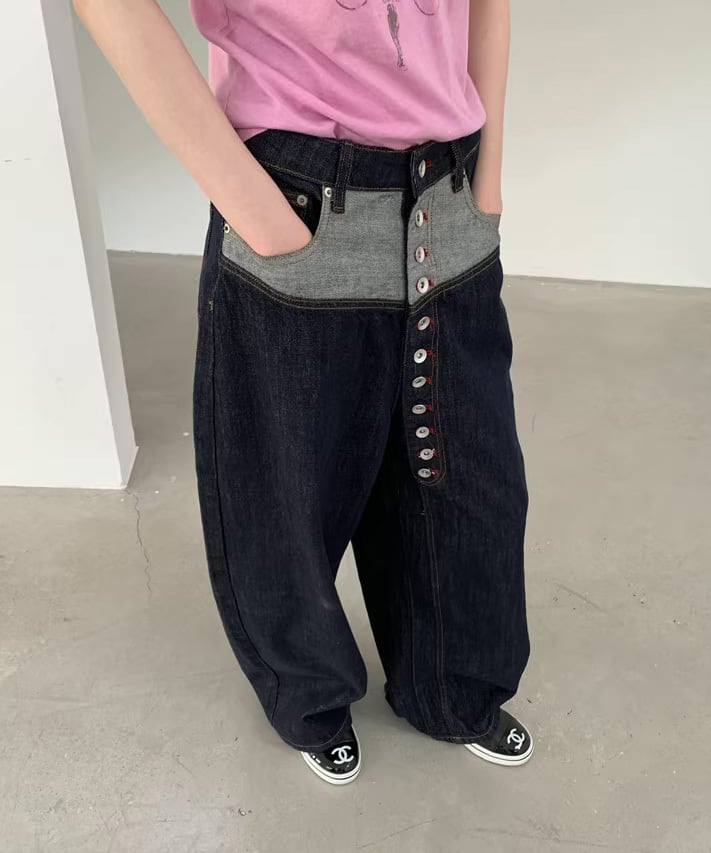 配色ウエストボタンデニムパンツ R0166