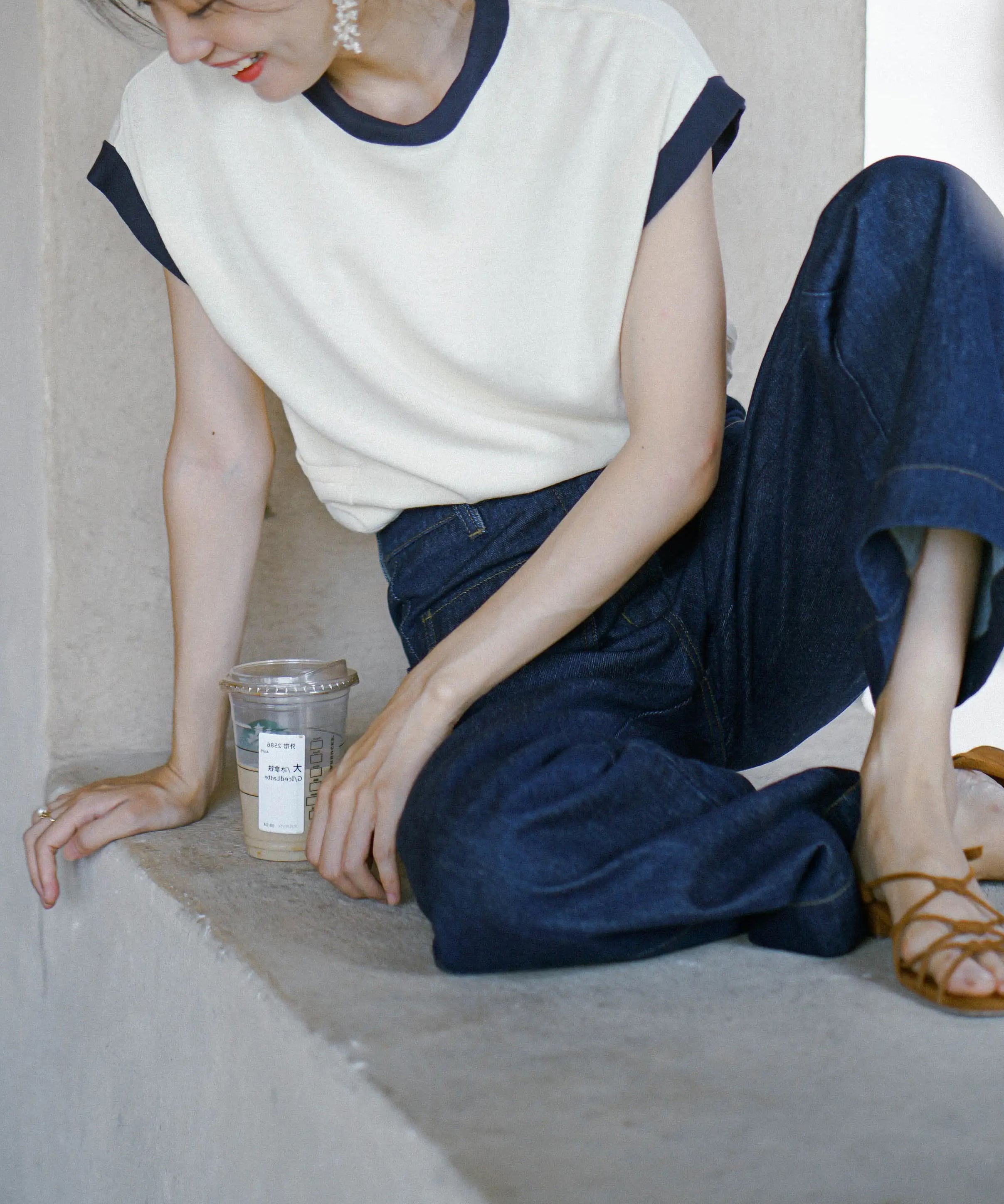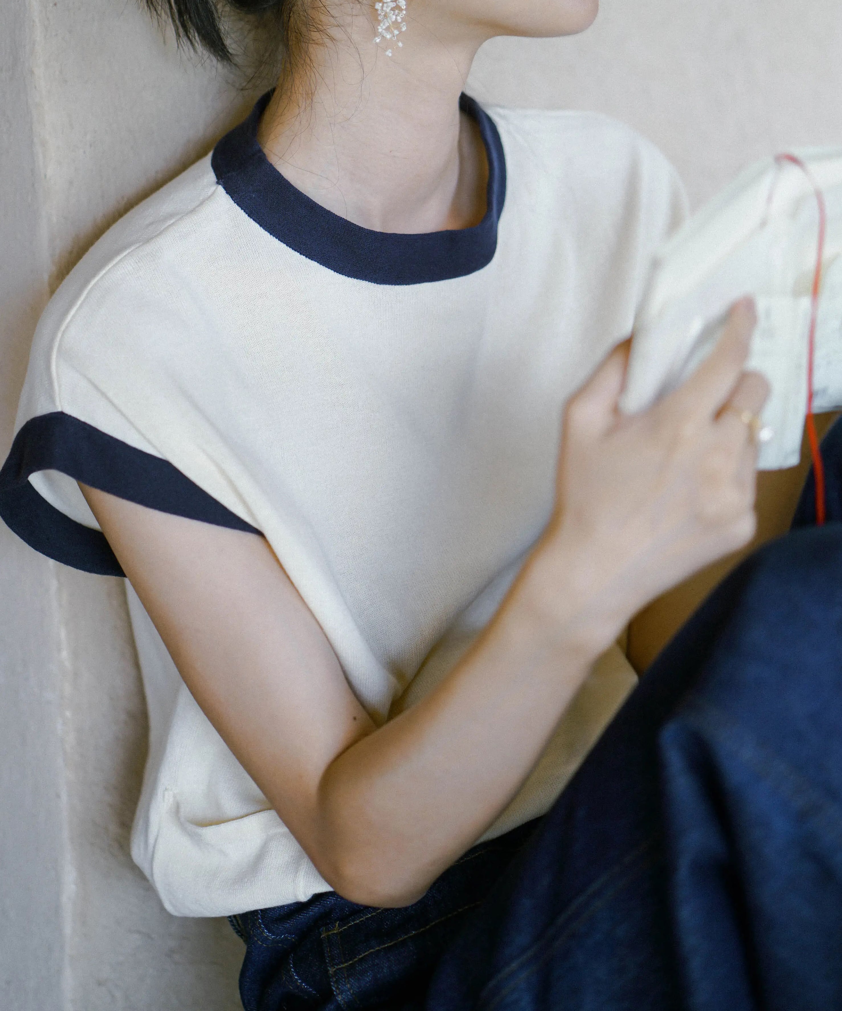 無駄のないデザインのフレンチスリーブニット。