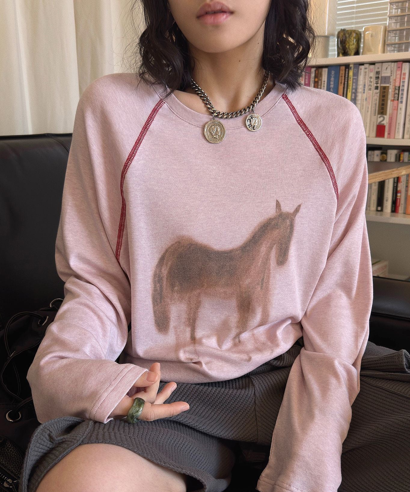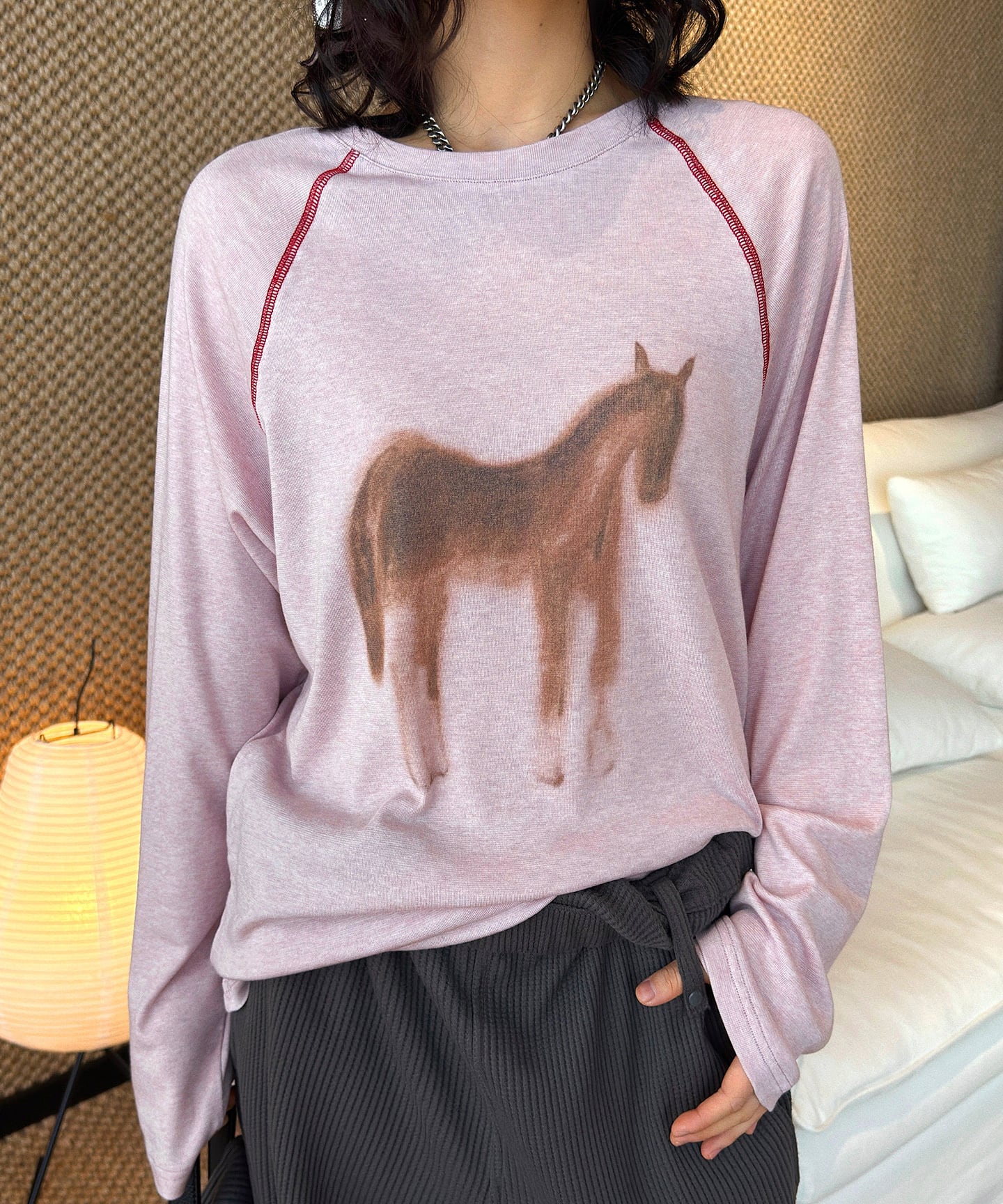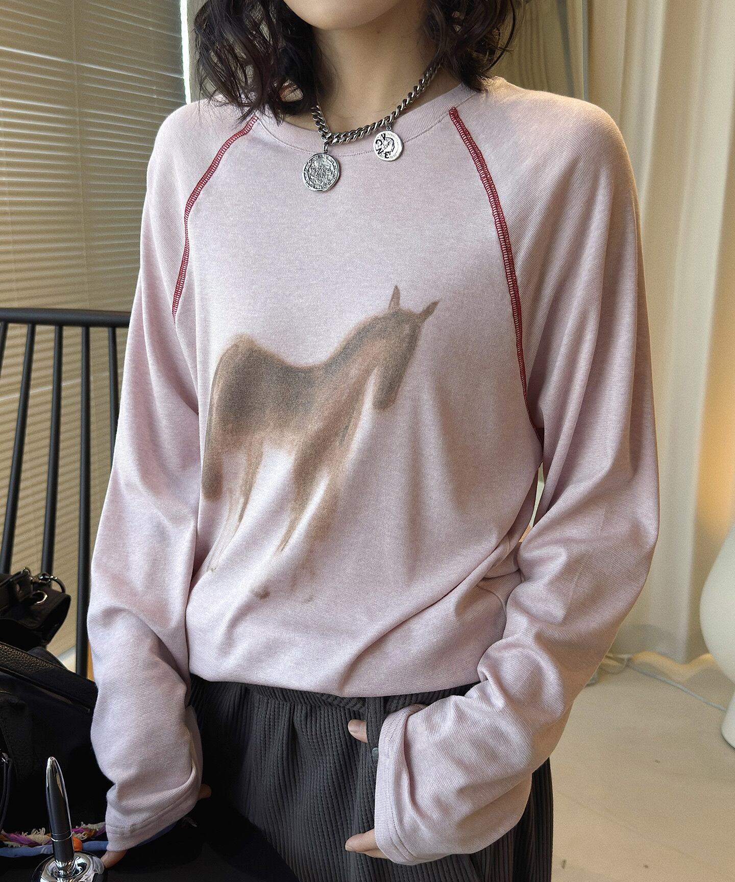 ポニープリントステッチラグランスリーブカットソー