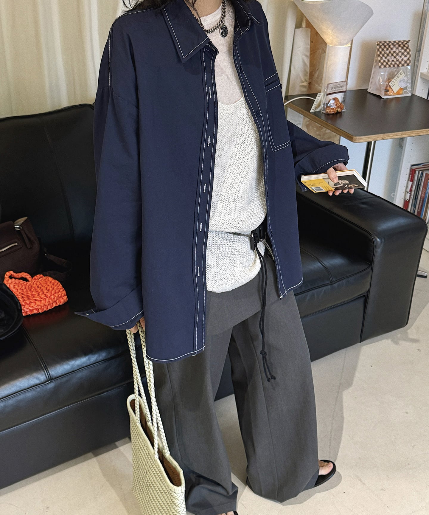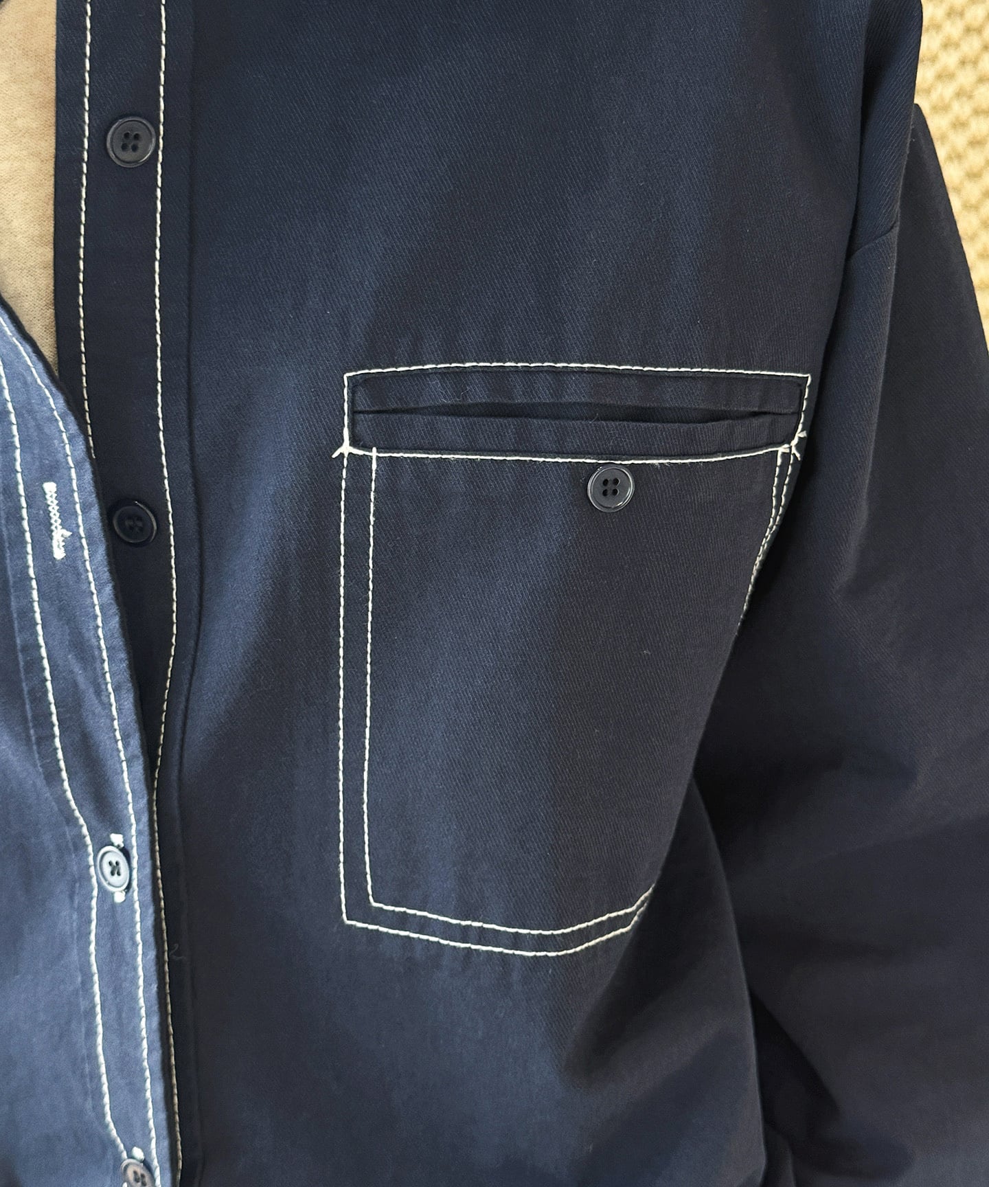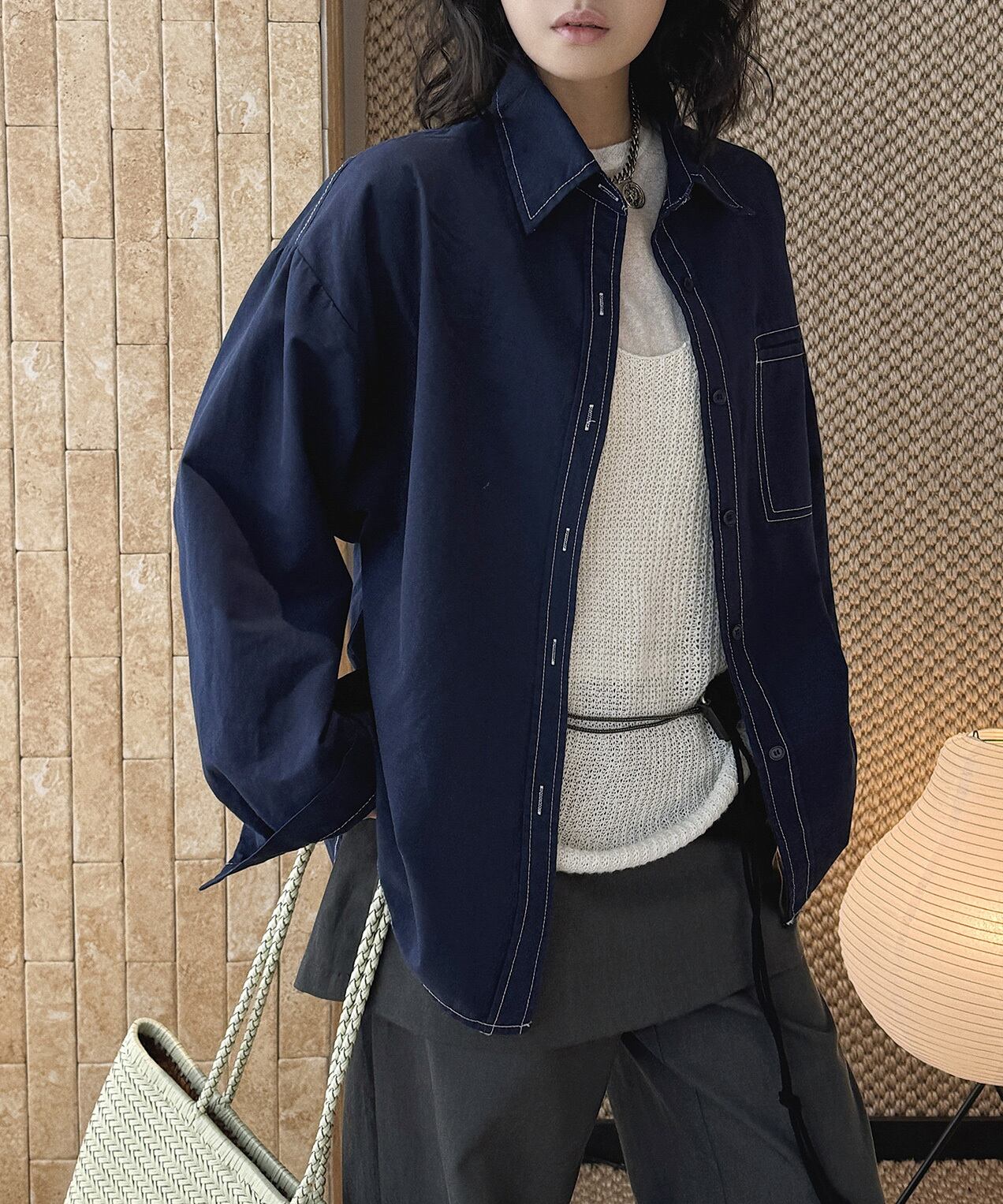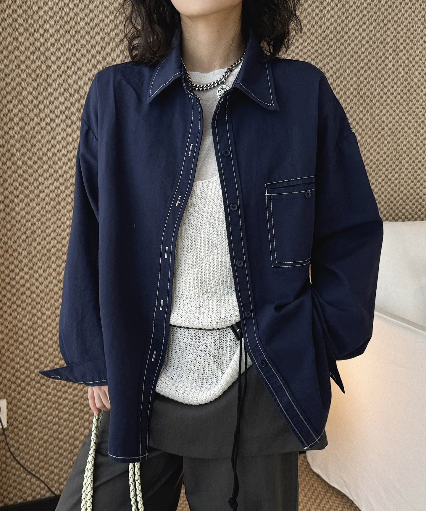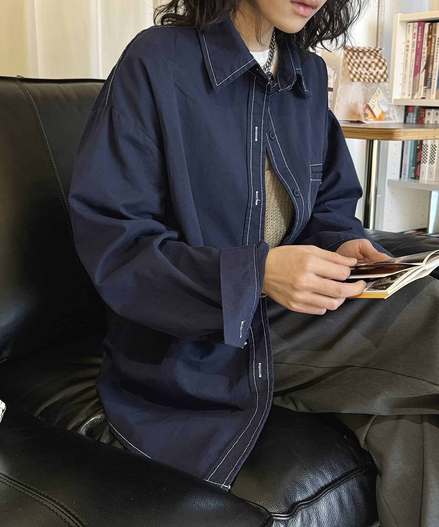 さりげなく入ったステッチがポイントのコットンシャツ。