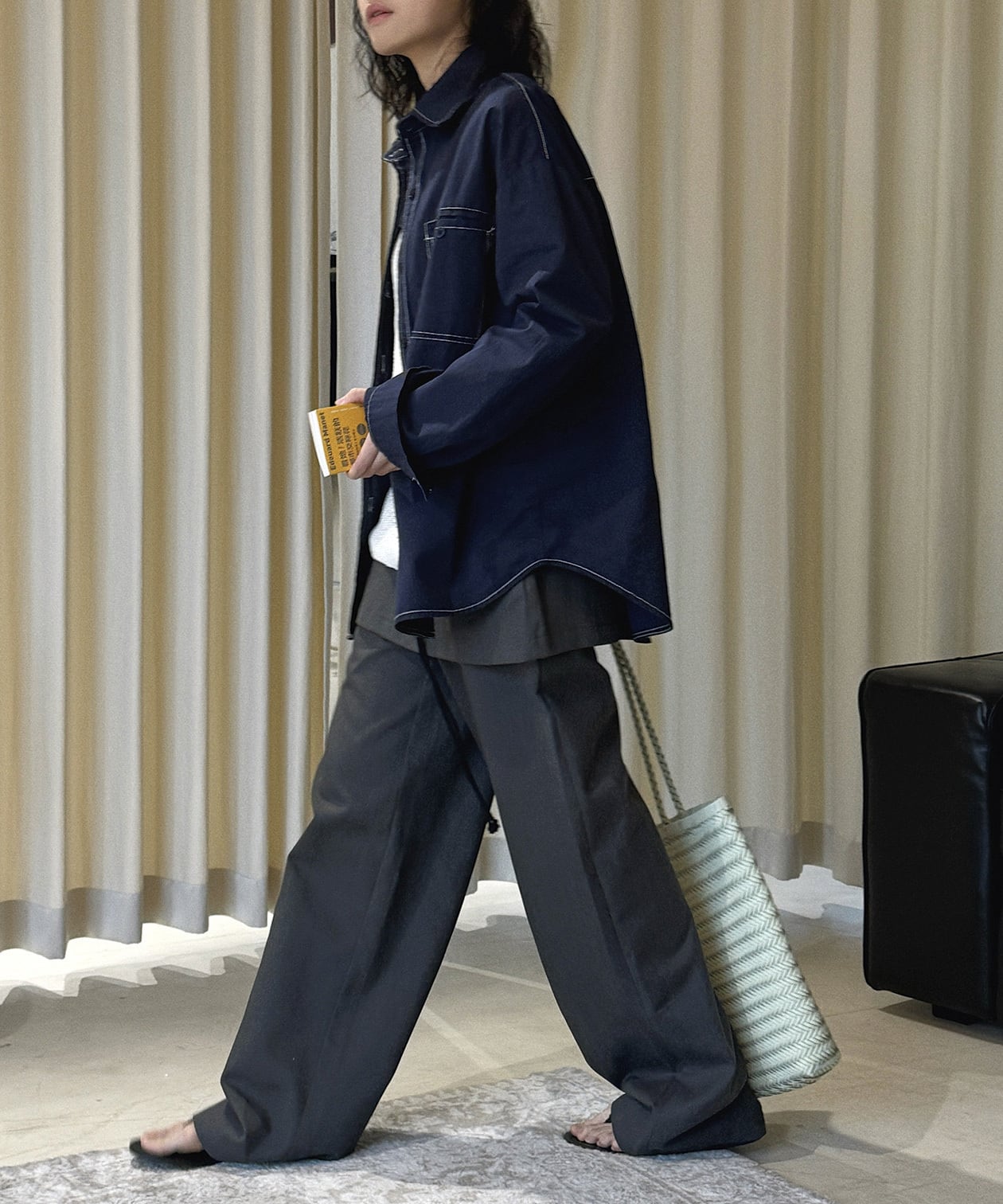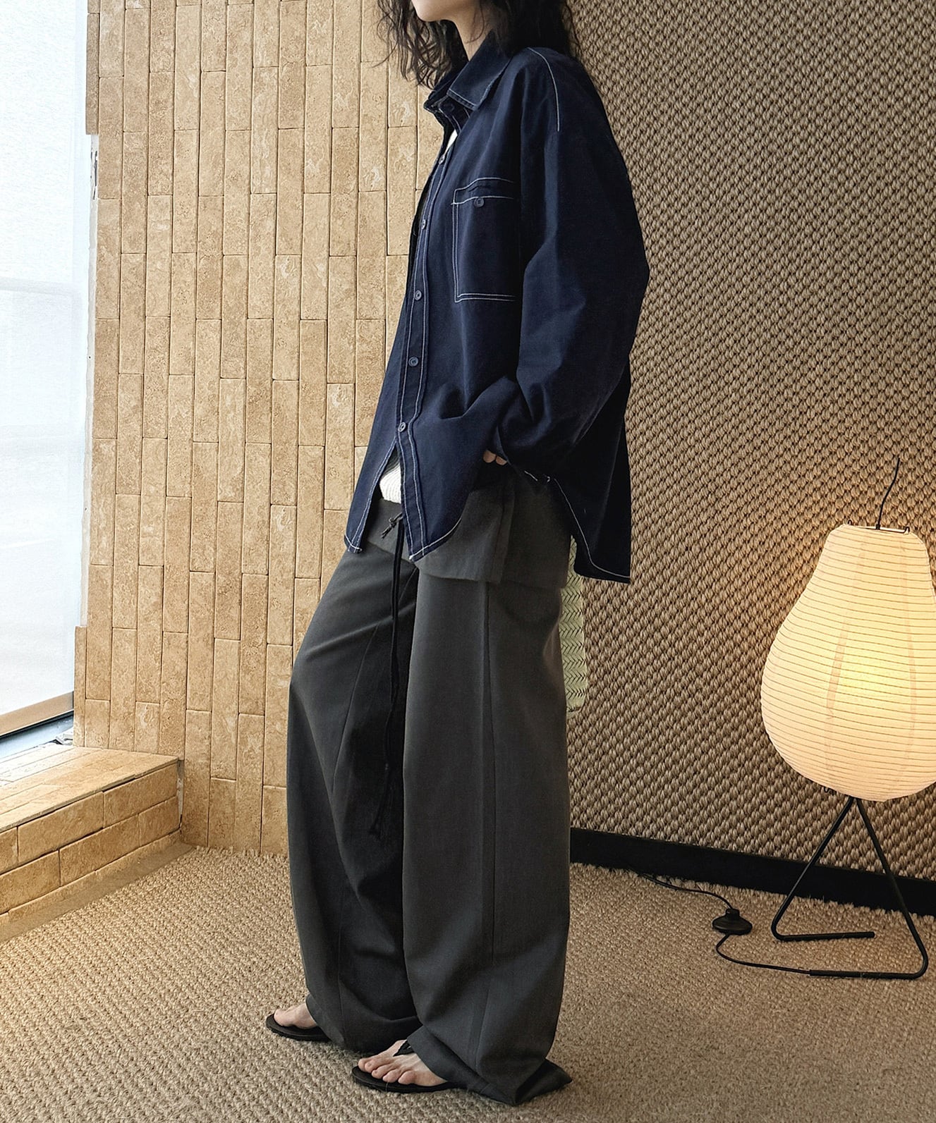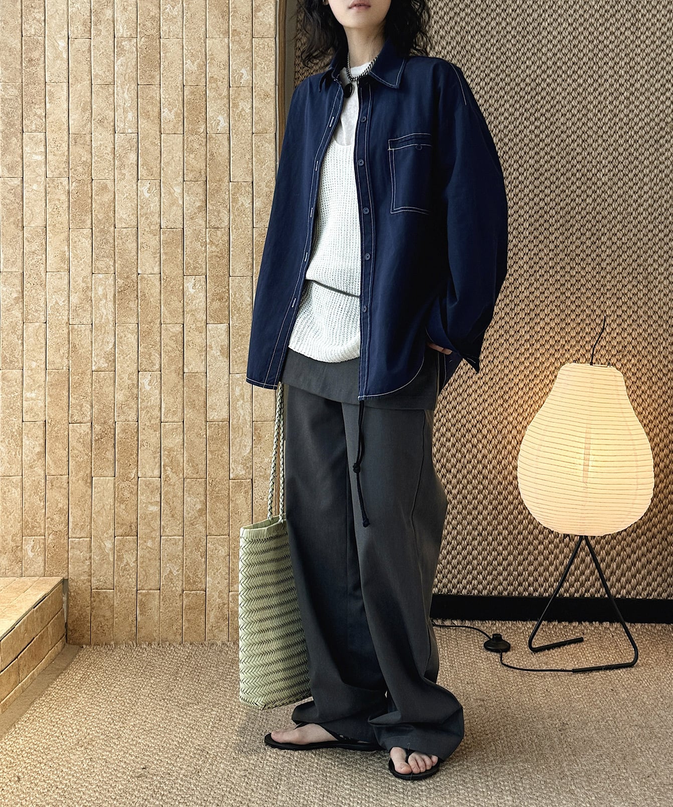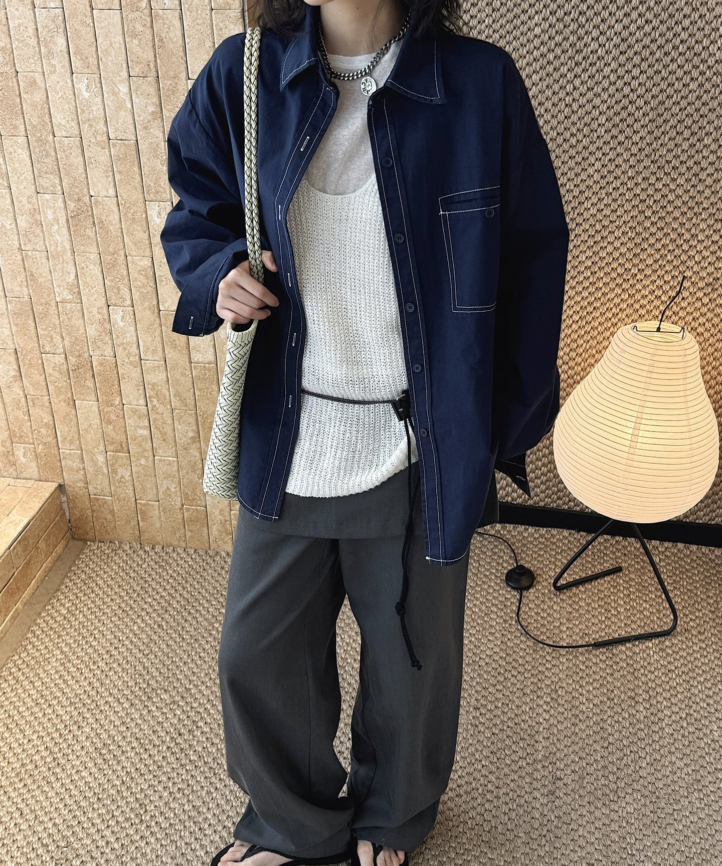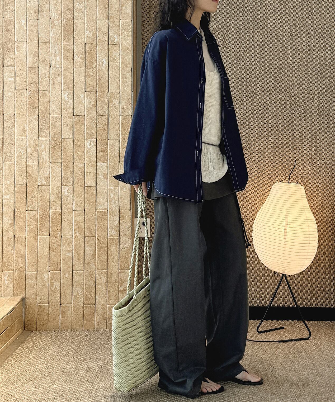さりげなく入ったステッチがポイントのコットンシャツ。
