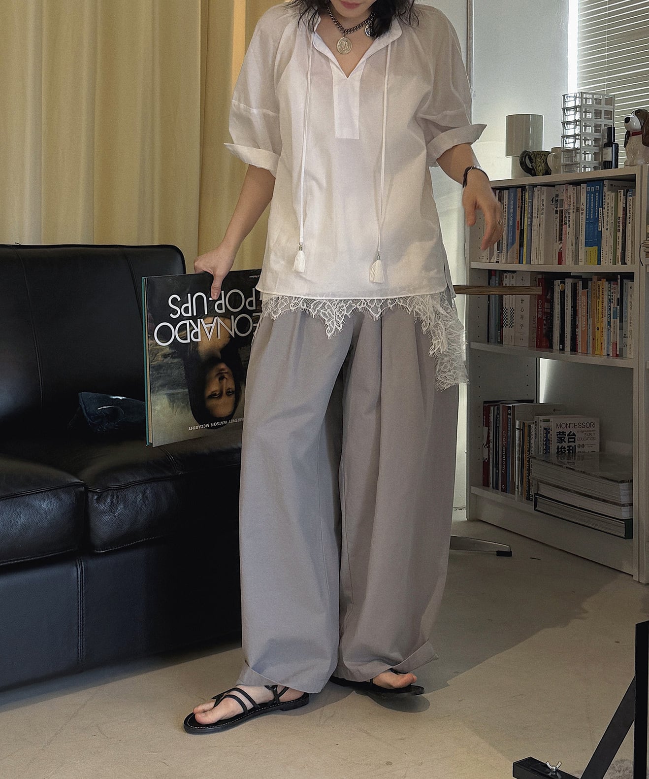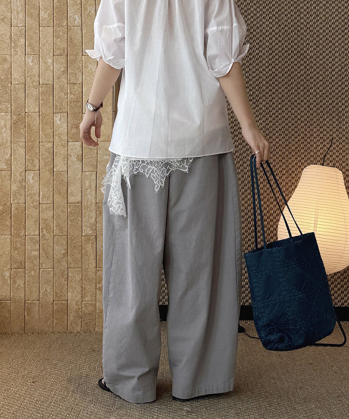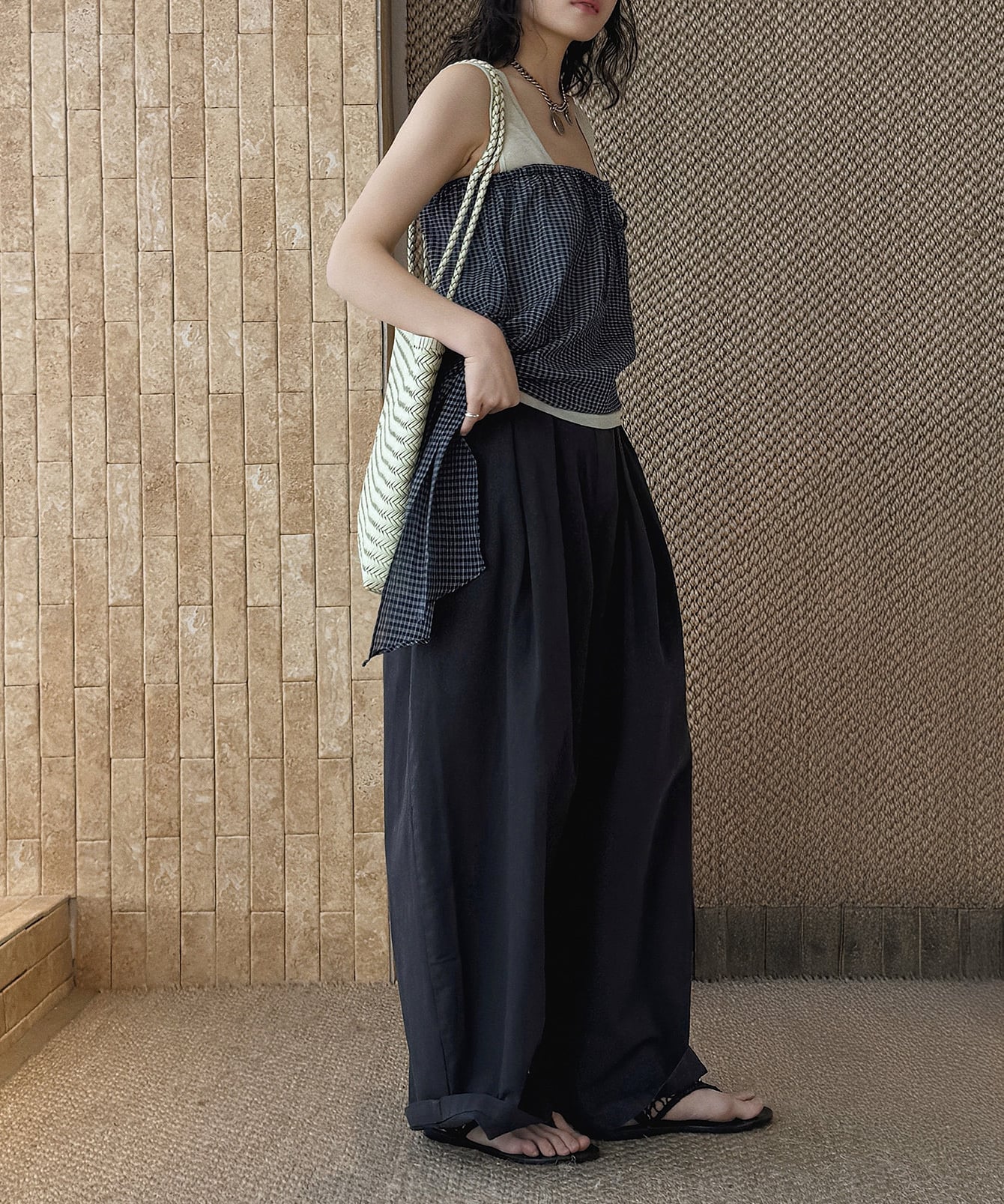ウエスト位置を高めに設定し、全体をすっきりと整える。