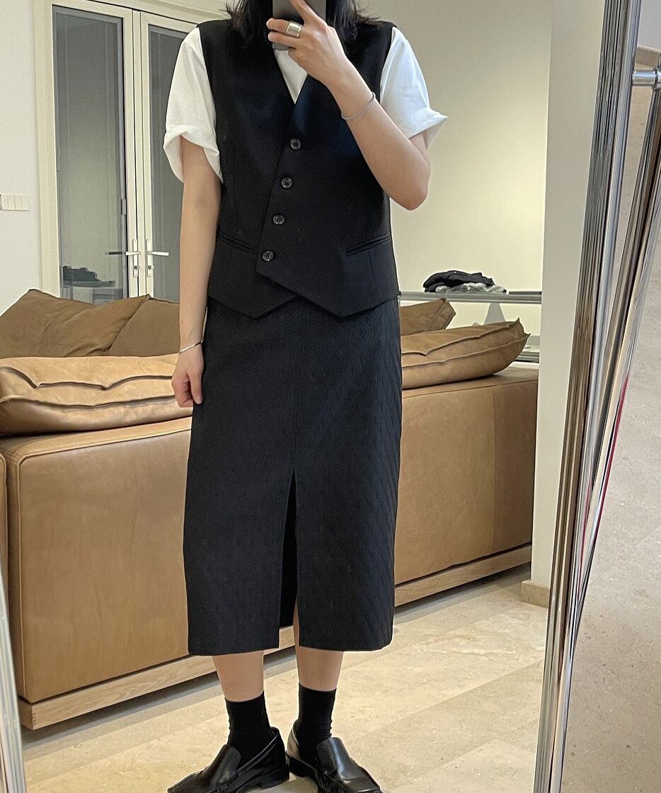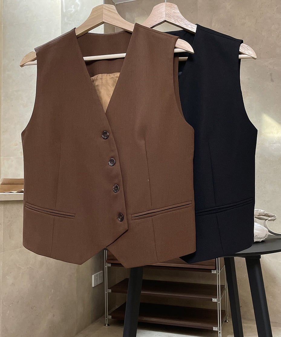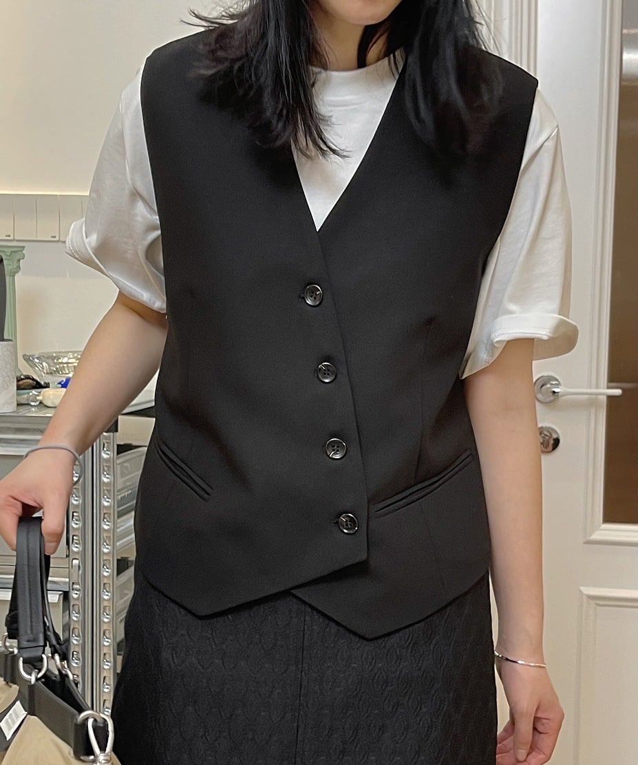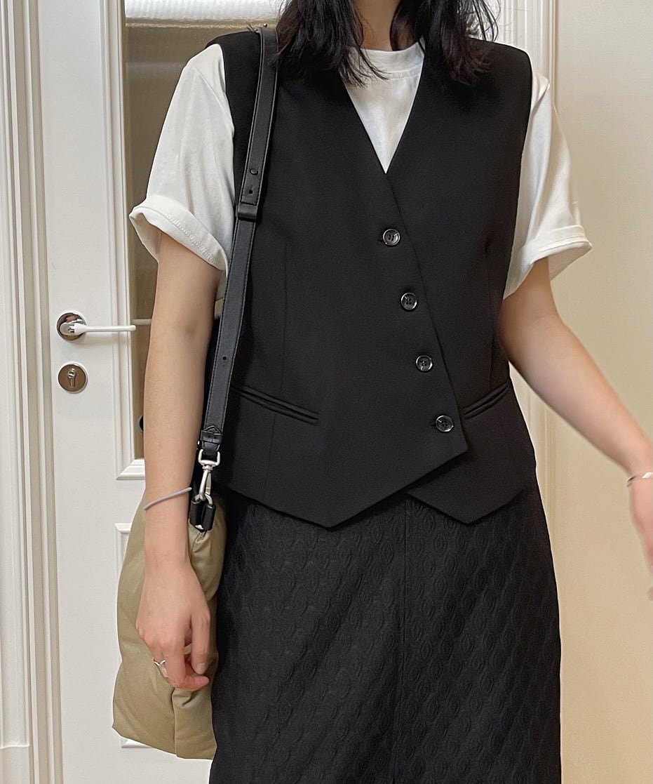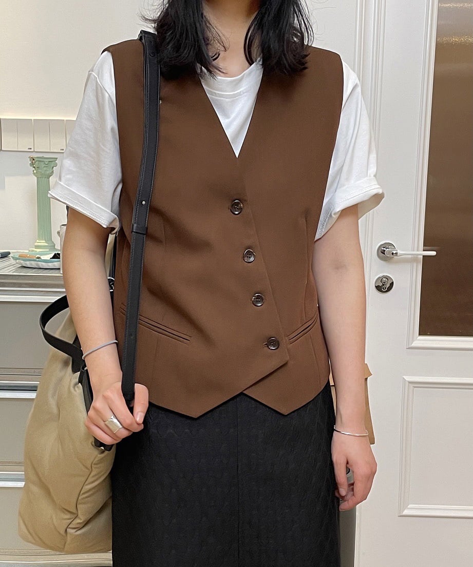 レトロアシメボタンベスト R0179
