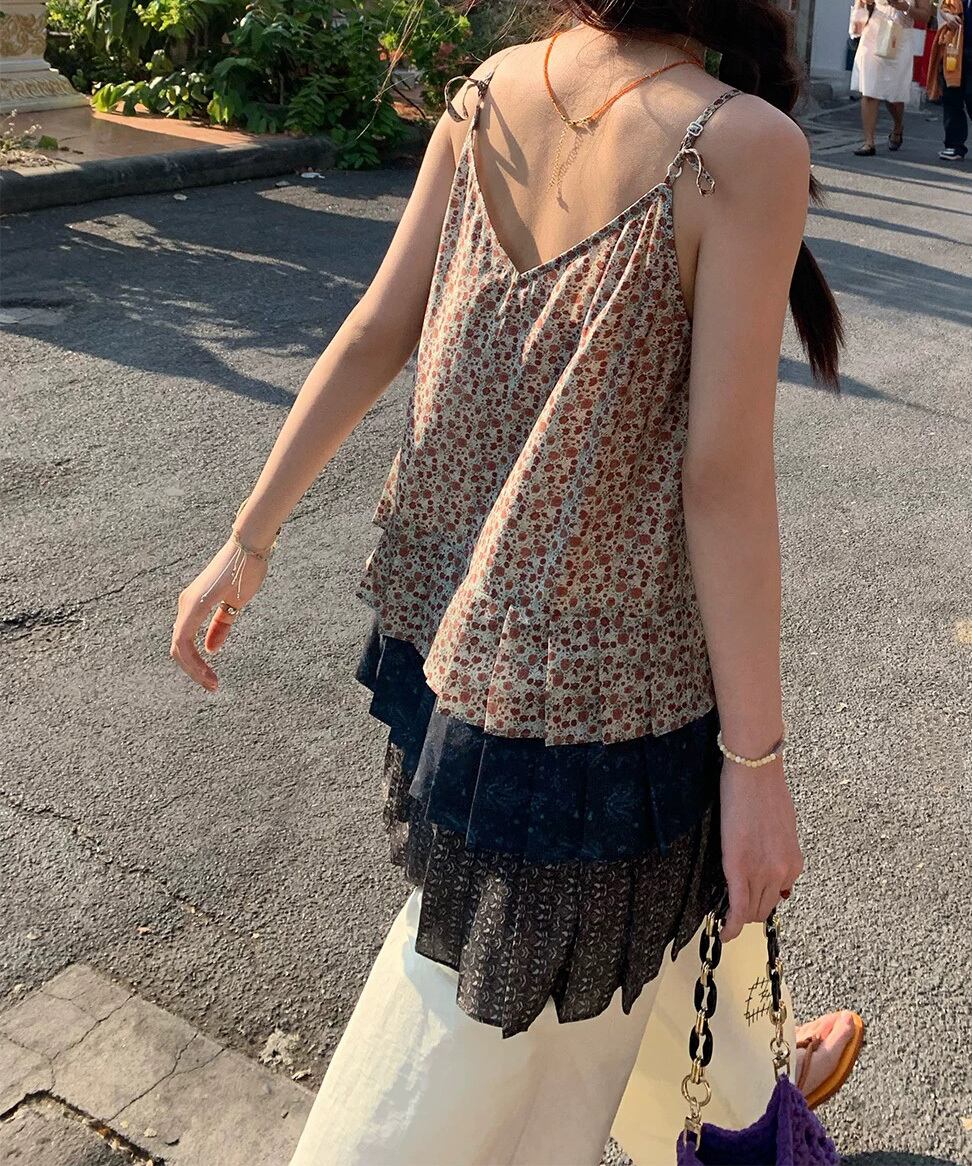 フラワーパッチワークキャミトップス R0181
