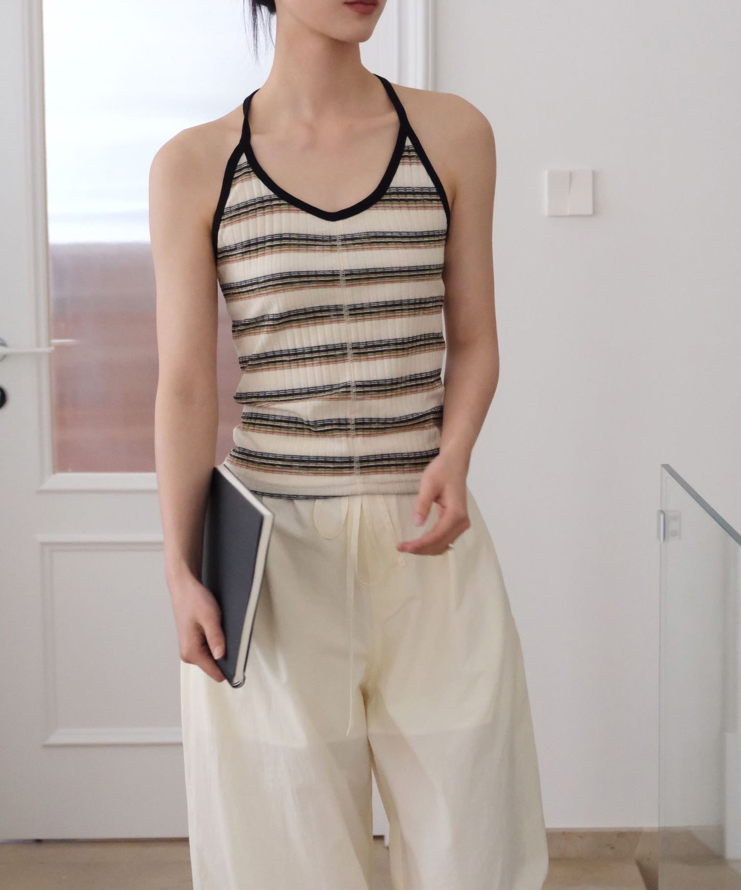 レトロボーダーホルターネックキャミソール R0186