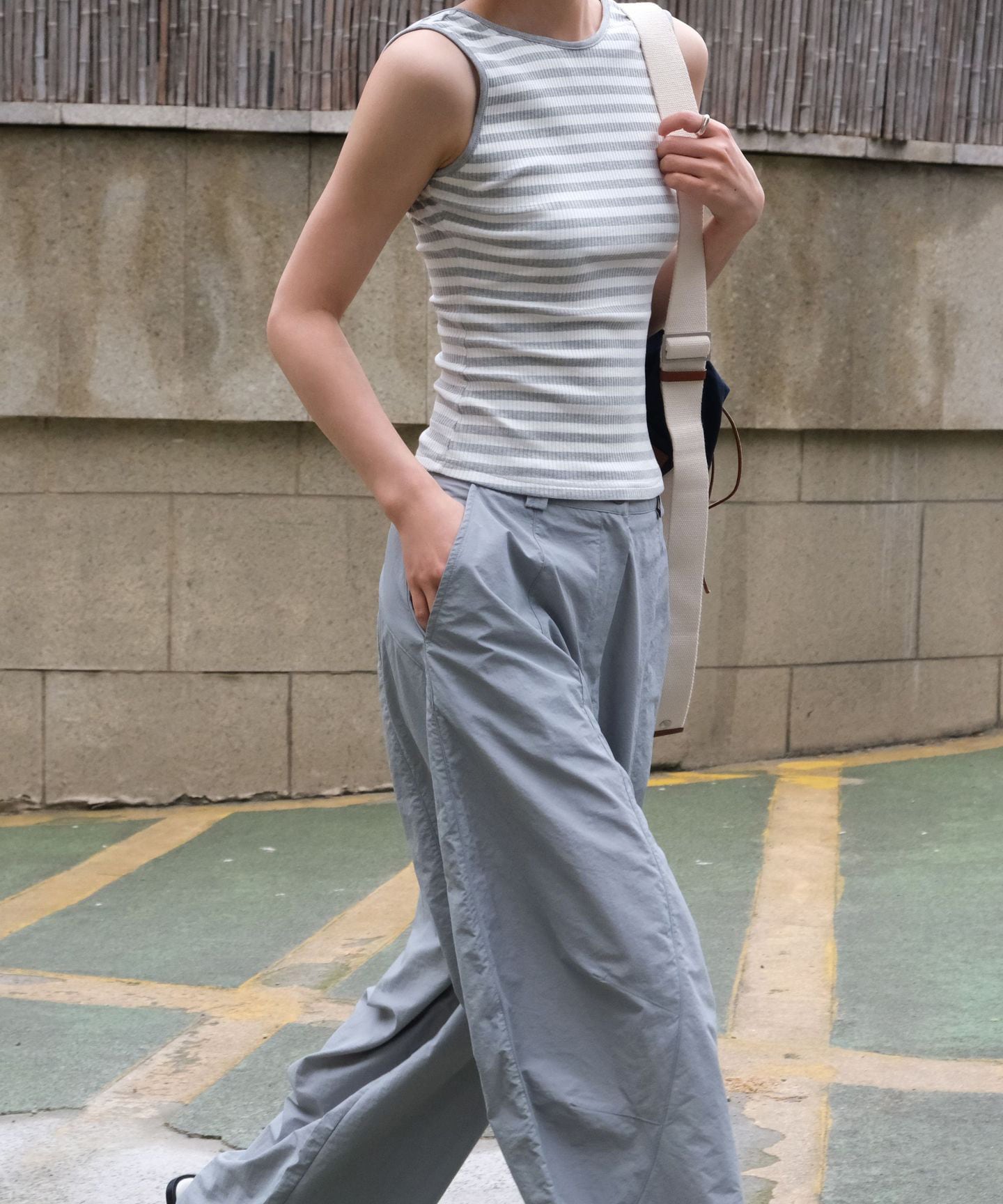 ボーダーでもすっきり見えるシルエット。