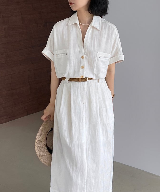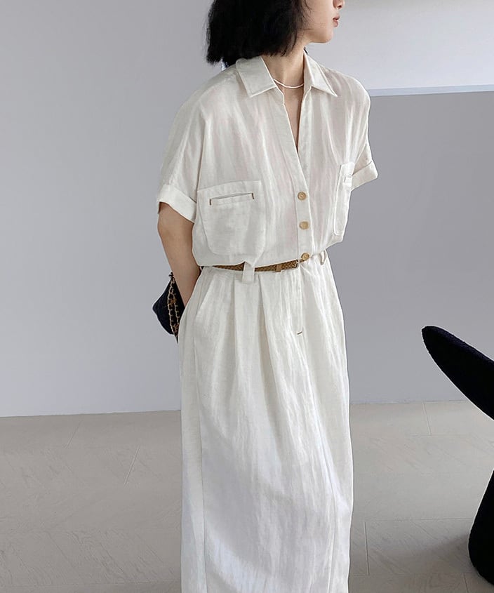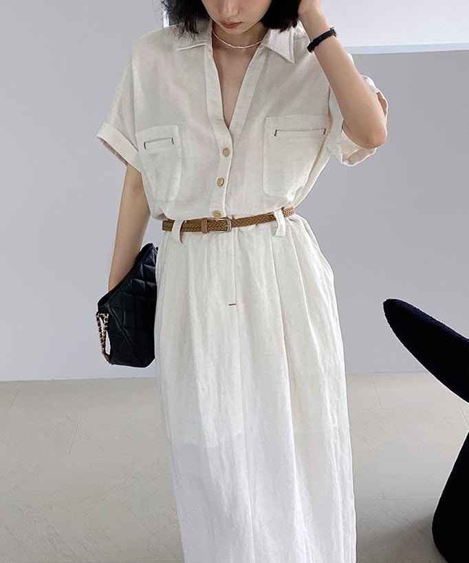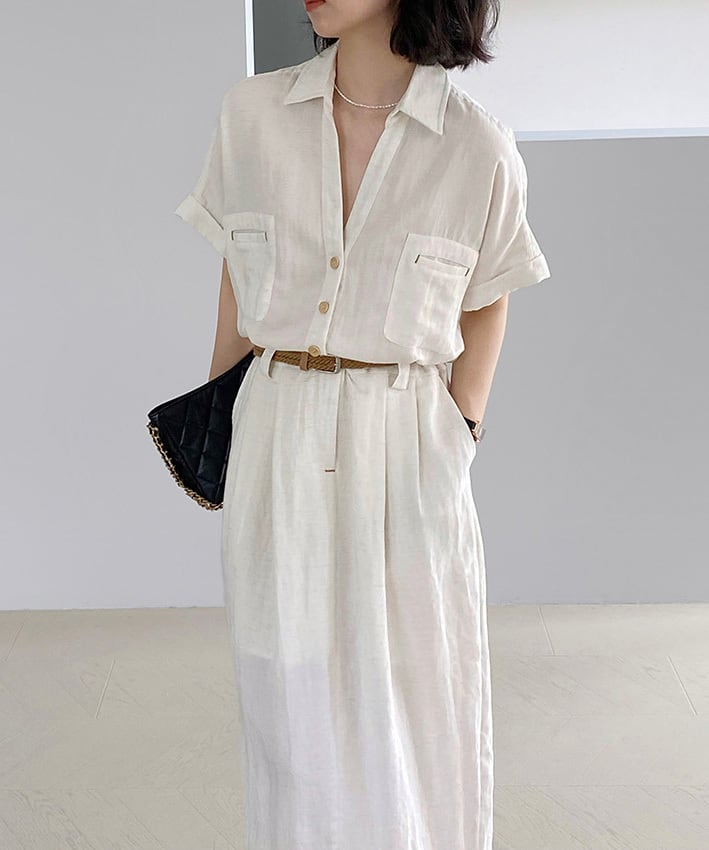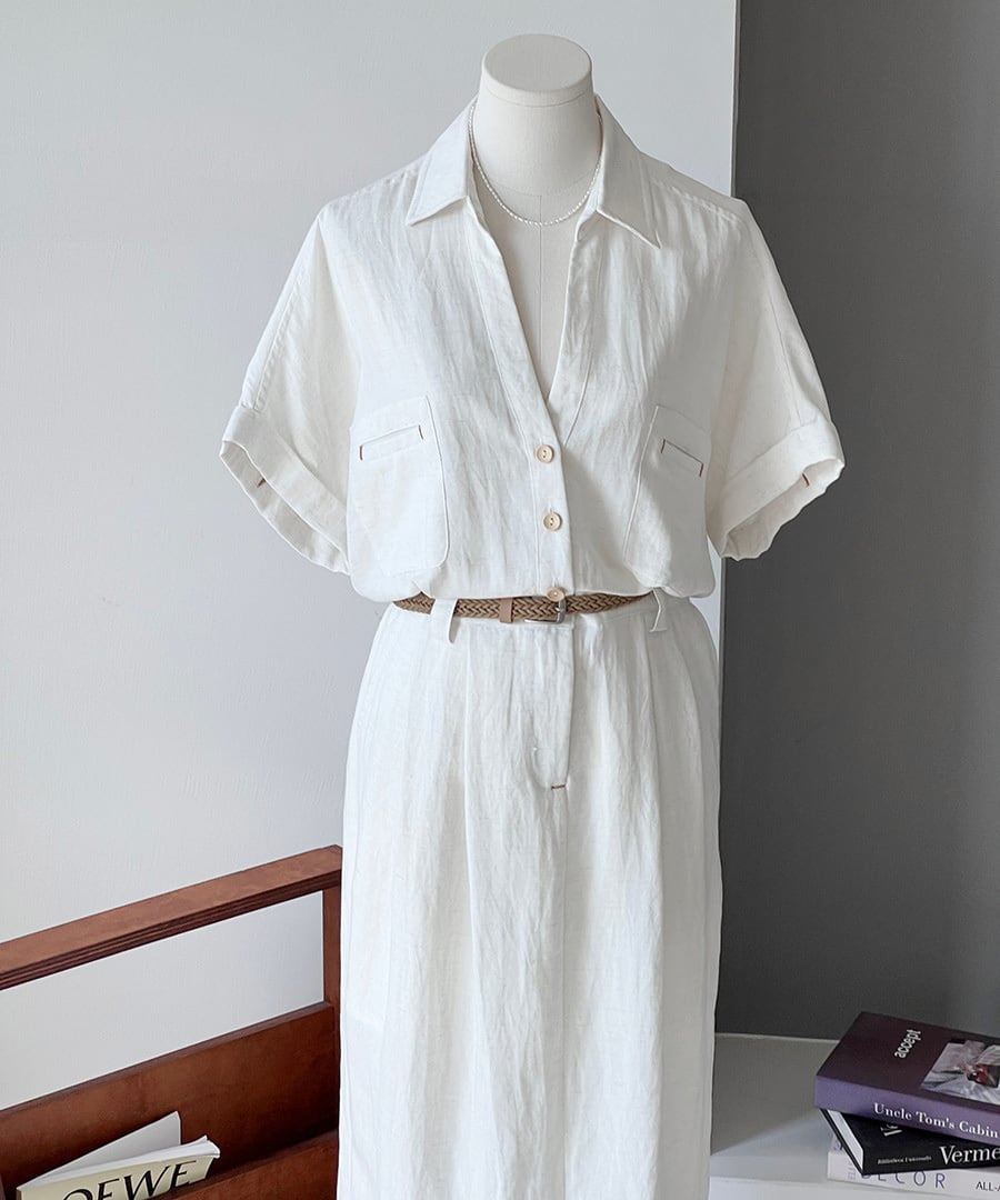 ベルト付きスキッパーワンピース R0189