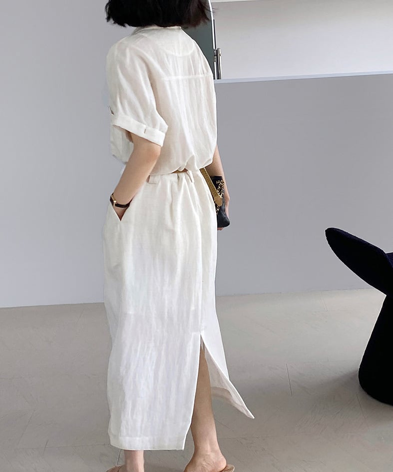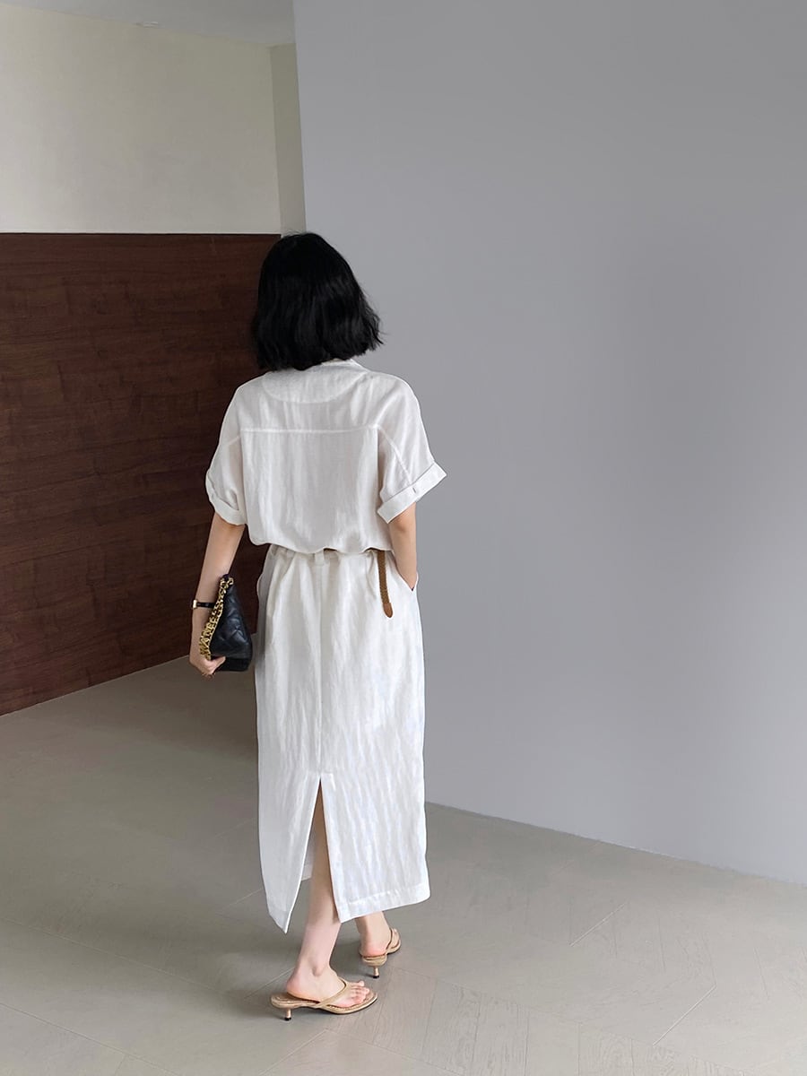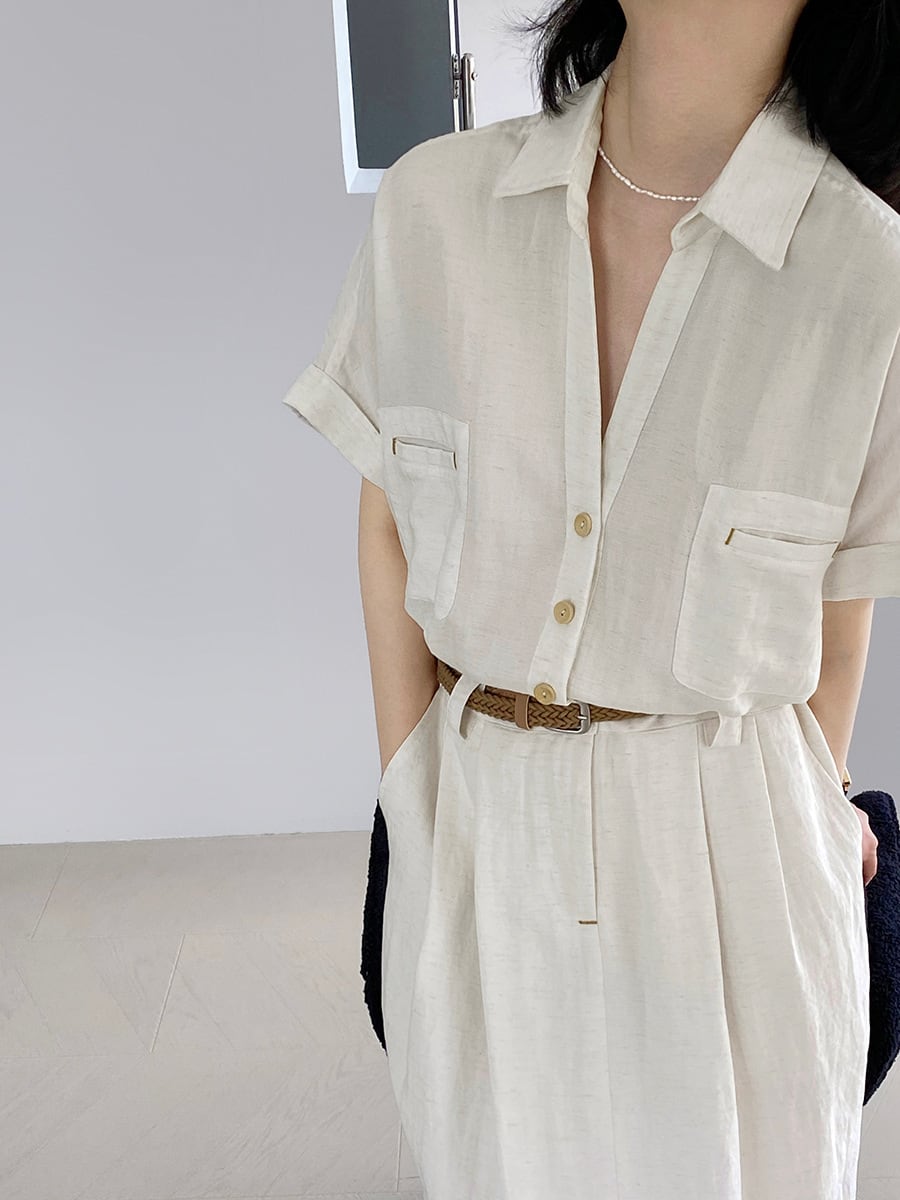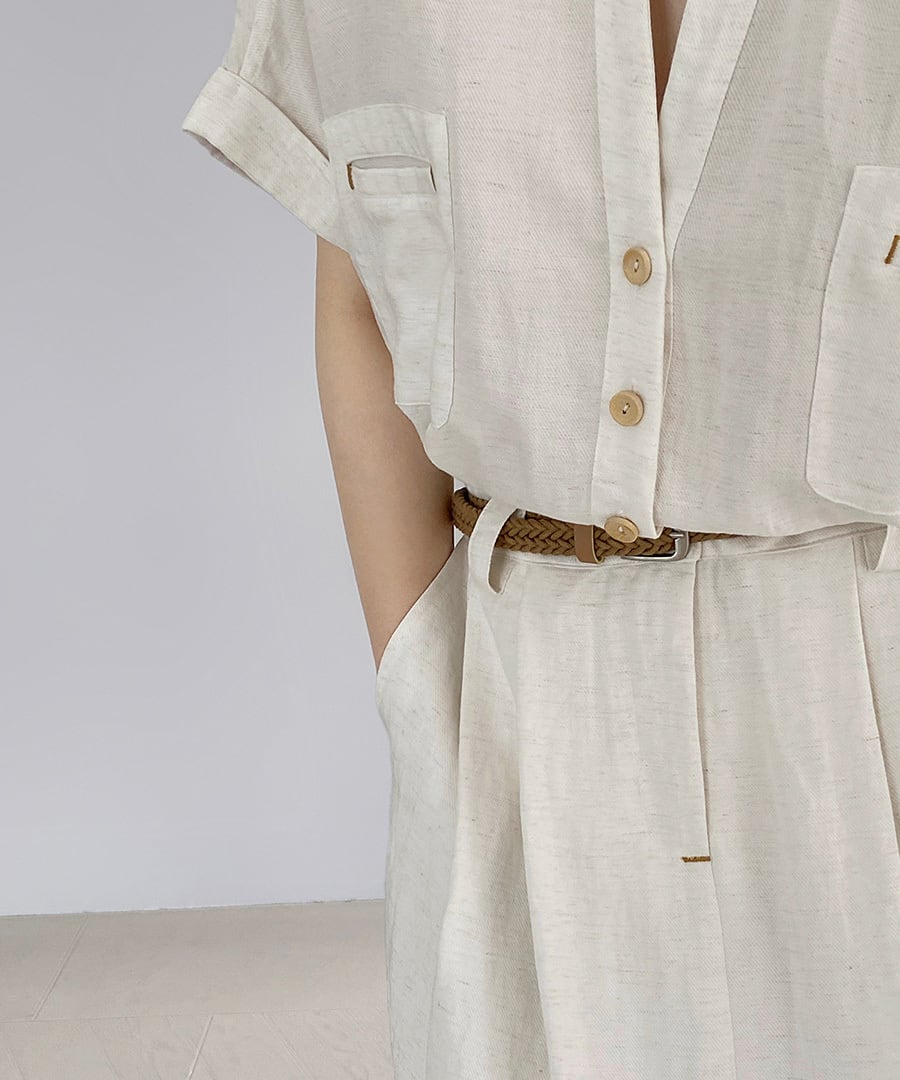 ベルト付きスキッパーワンピース R0189