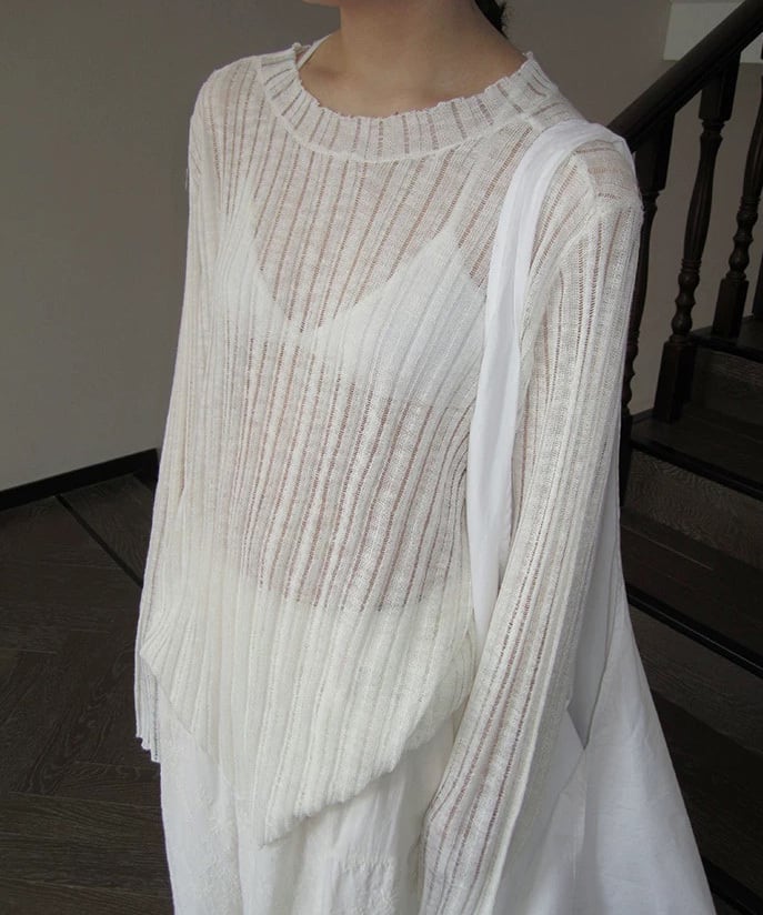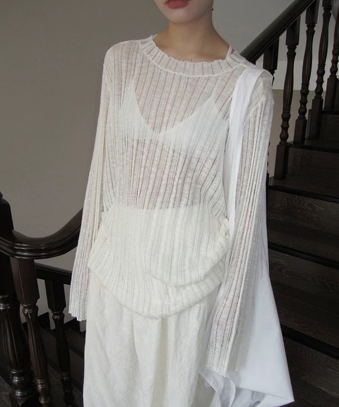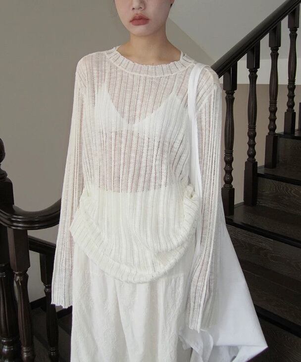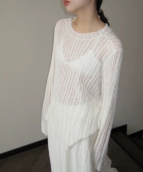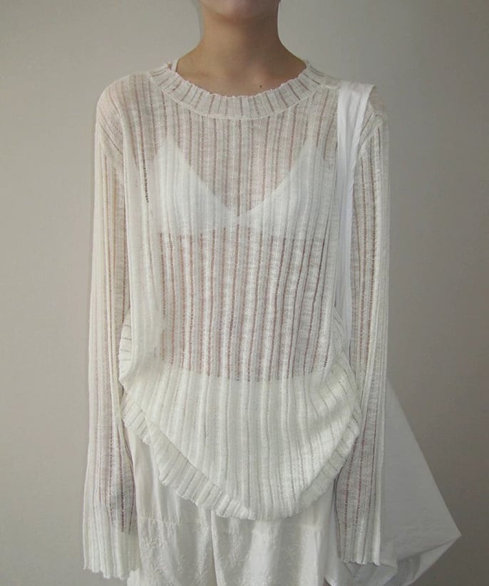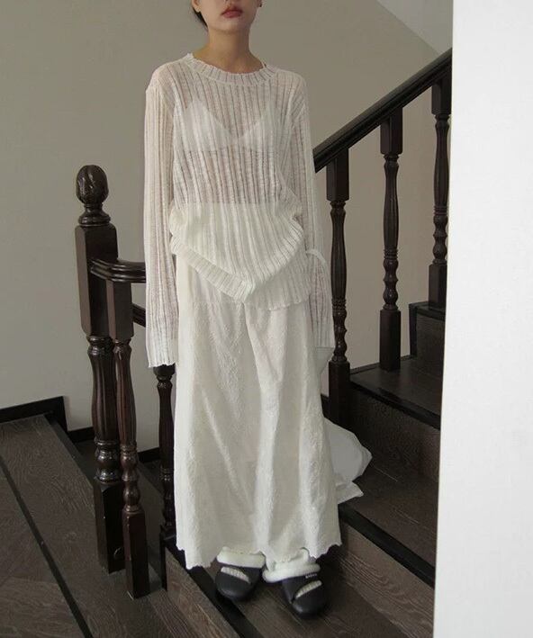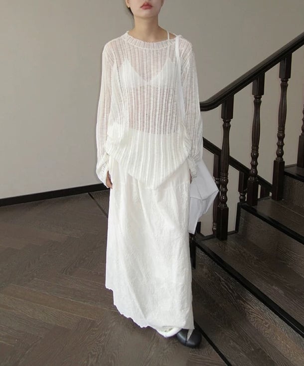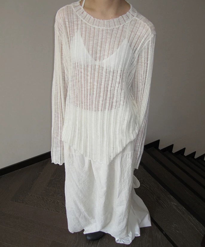 軽さのある見え方が特徴のニットロングカットソー。 レイヤードすると奥行きが出て、シンプルなスタイルにも変化がつきます。 一枚でも、重ねても使いやすいバランスです。