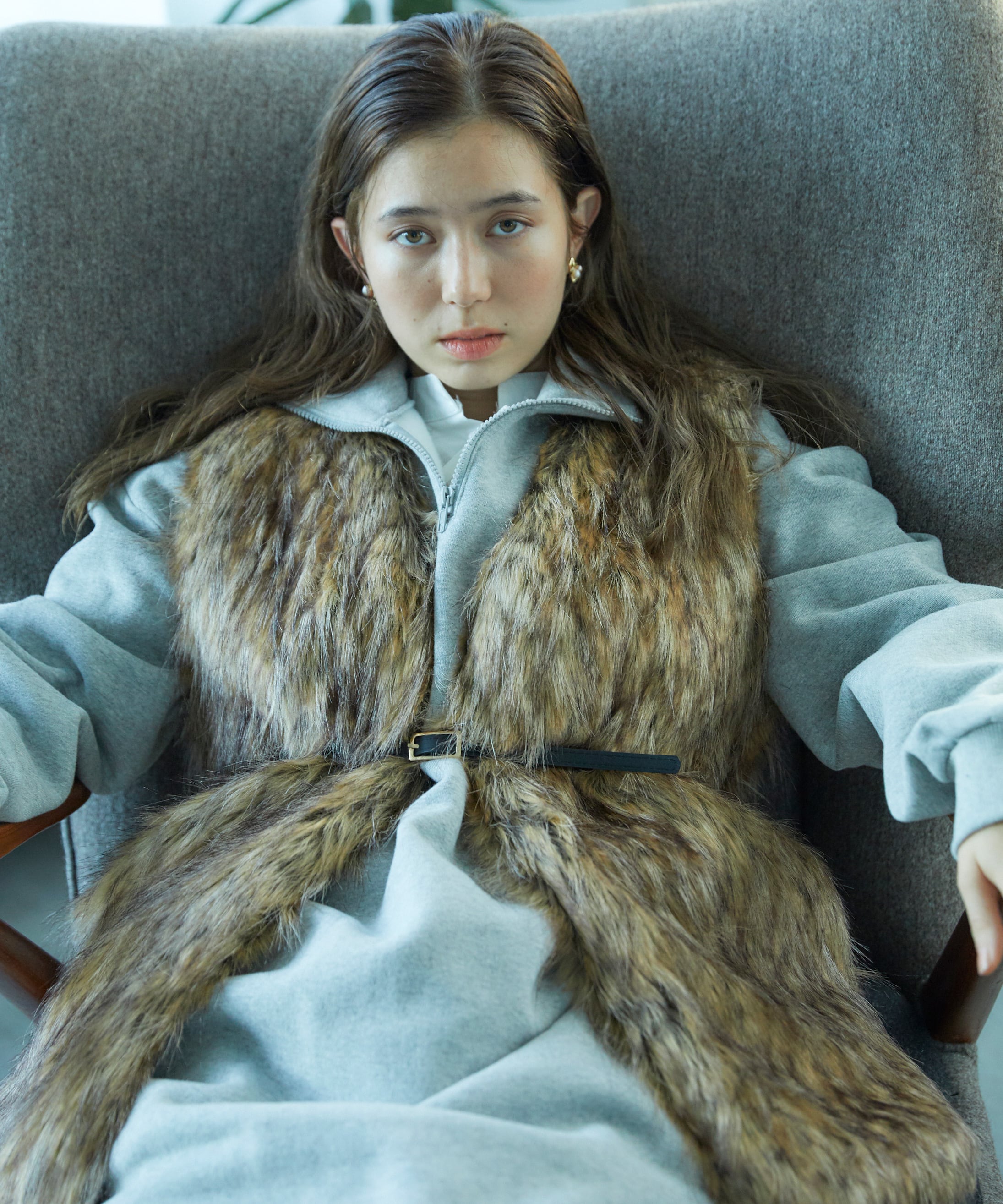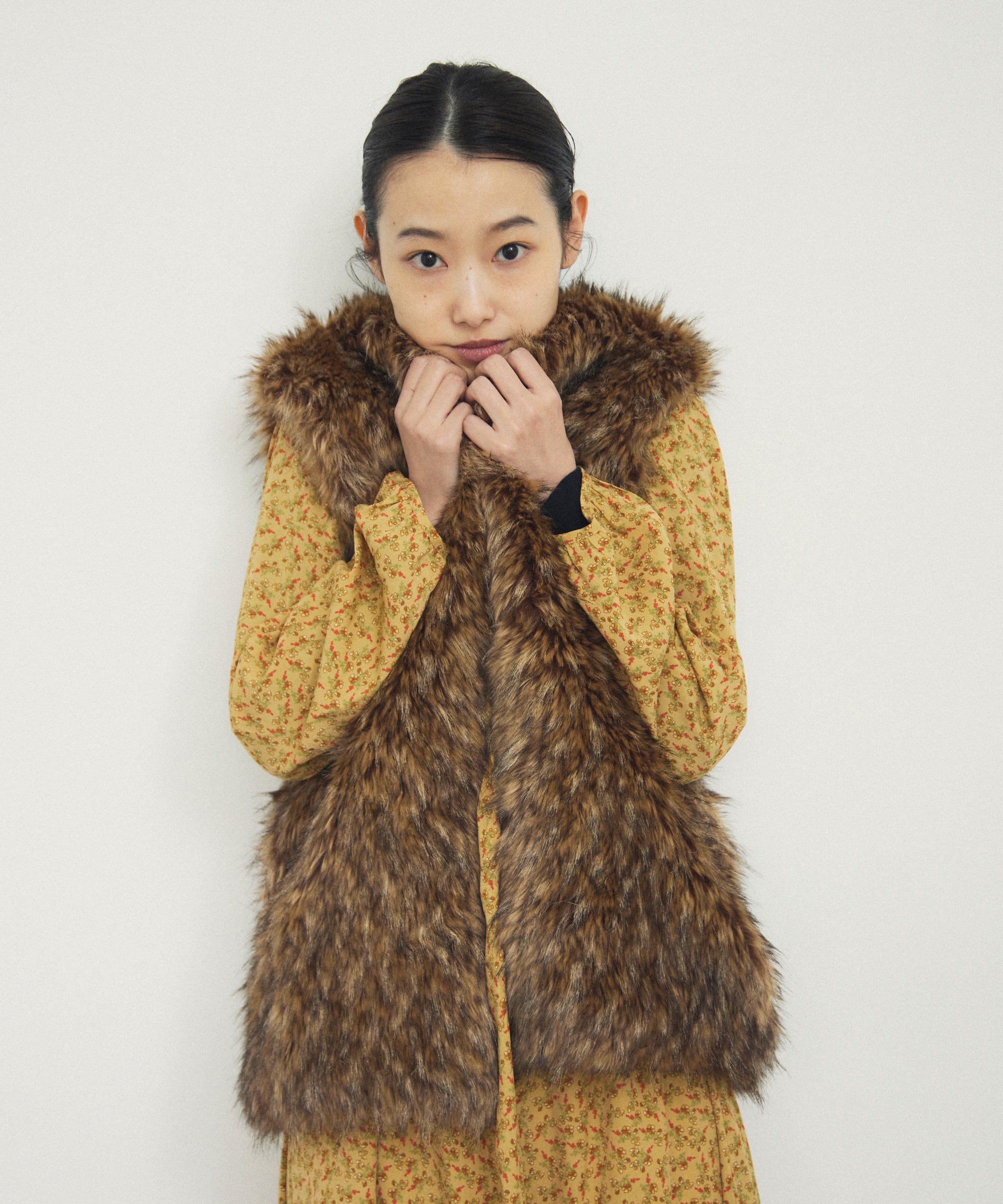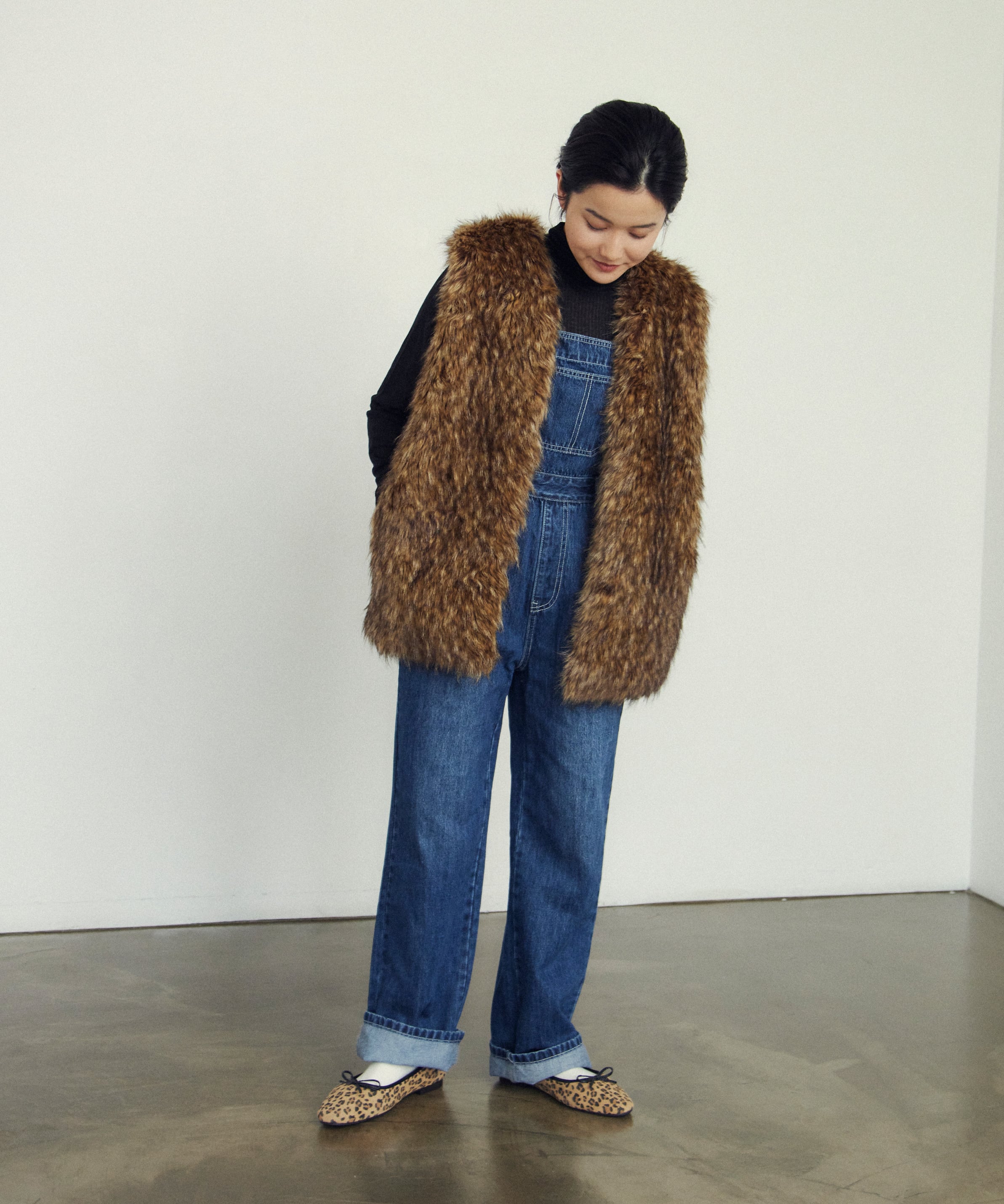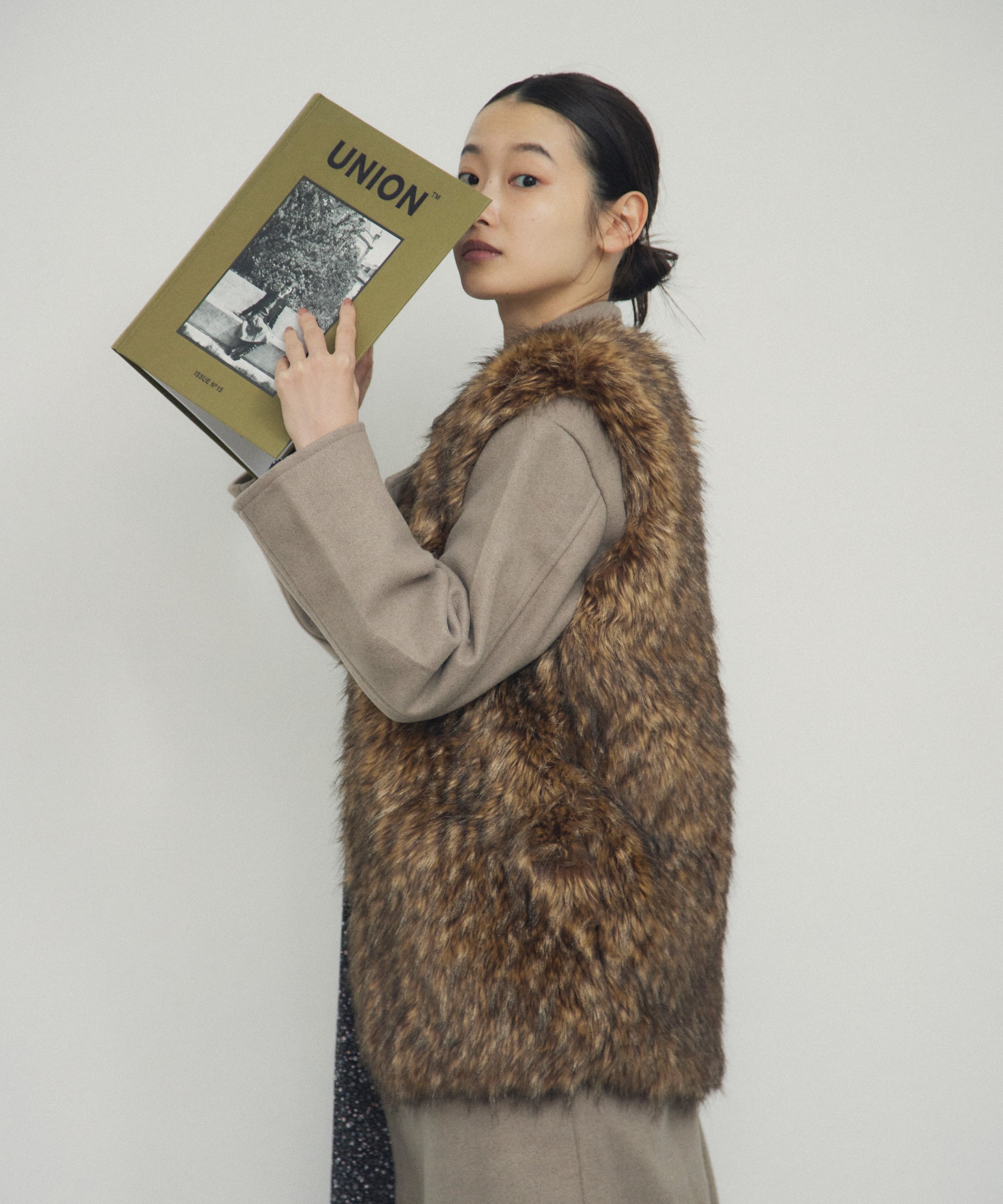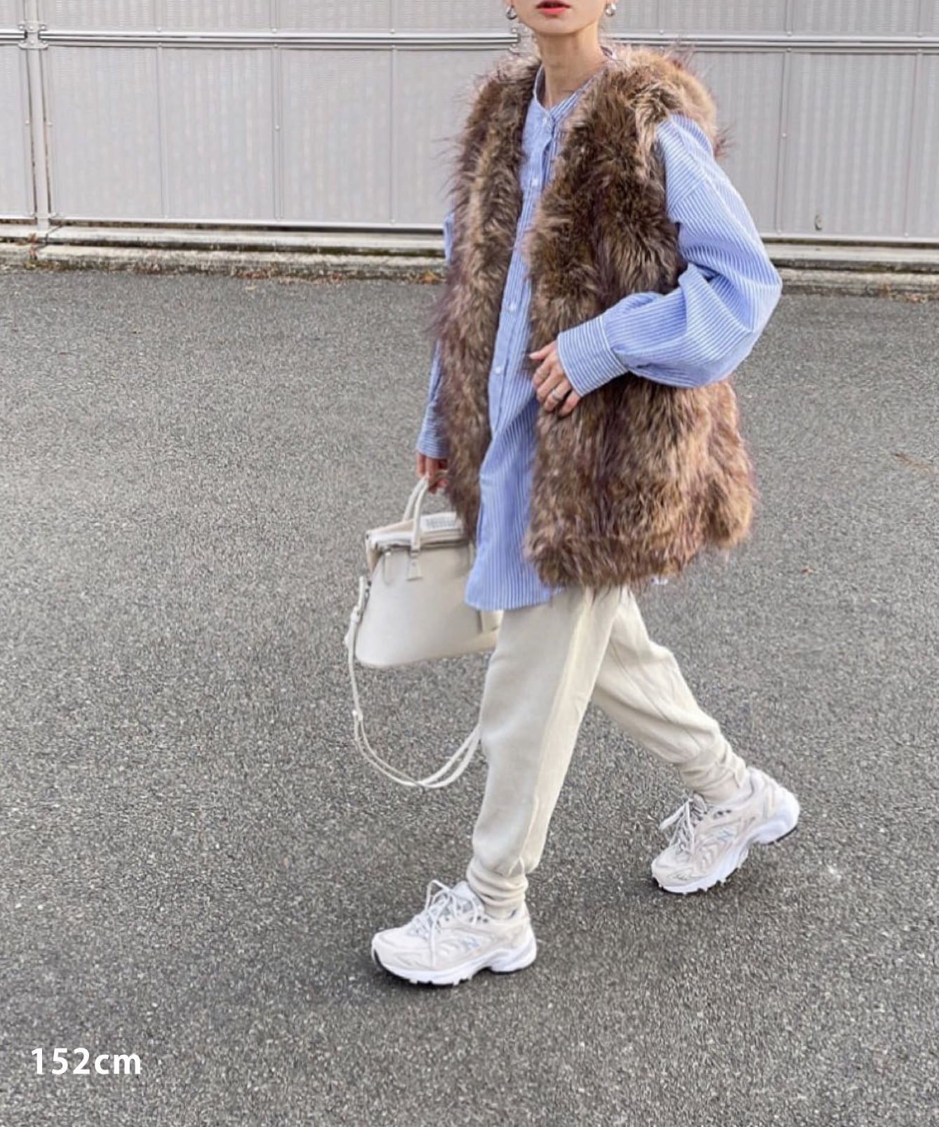 ファーアイテムに抵抗のある方もベストなら取り入れやすいのでおすすめです。