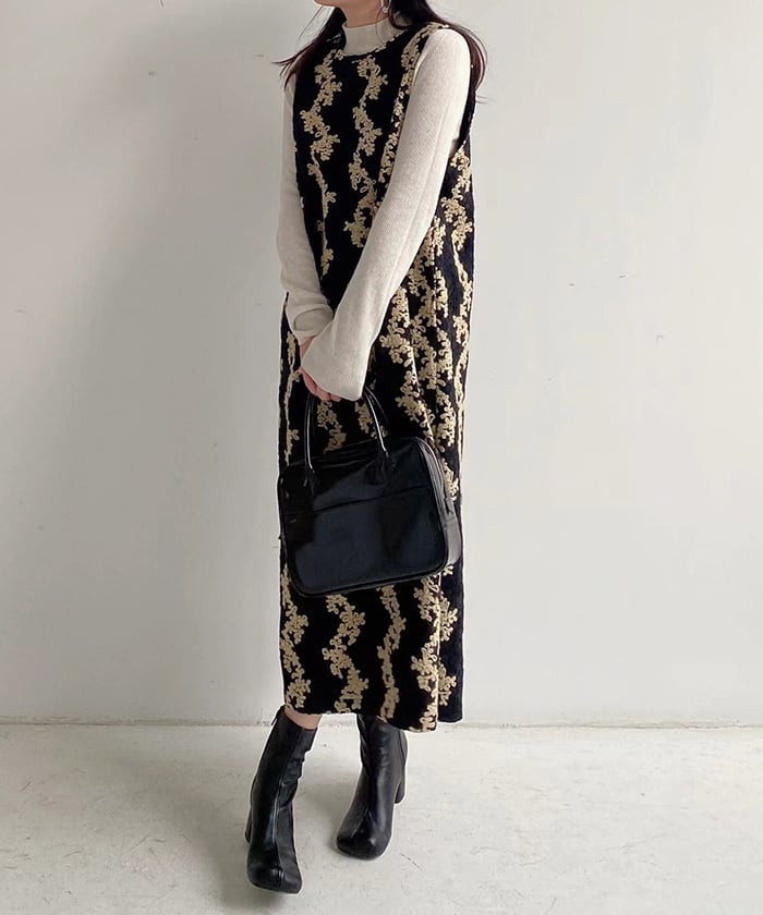 着こなし広がるジャガードワンピース