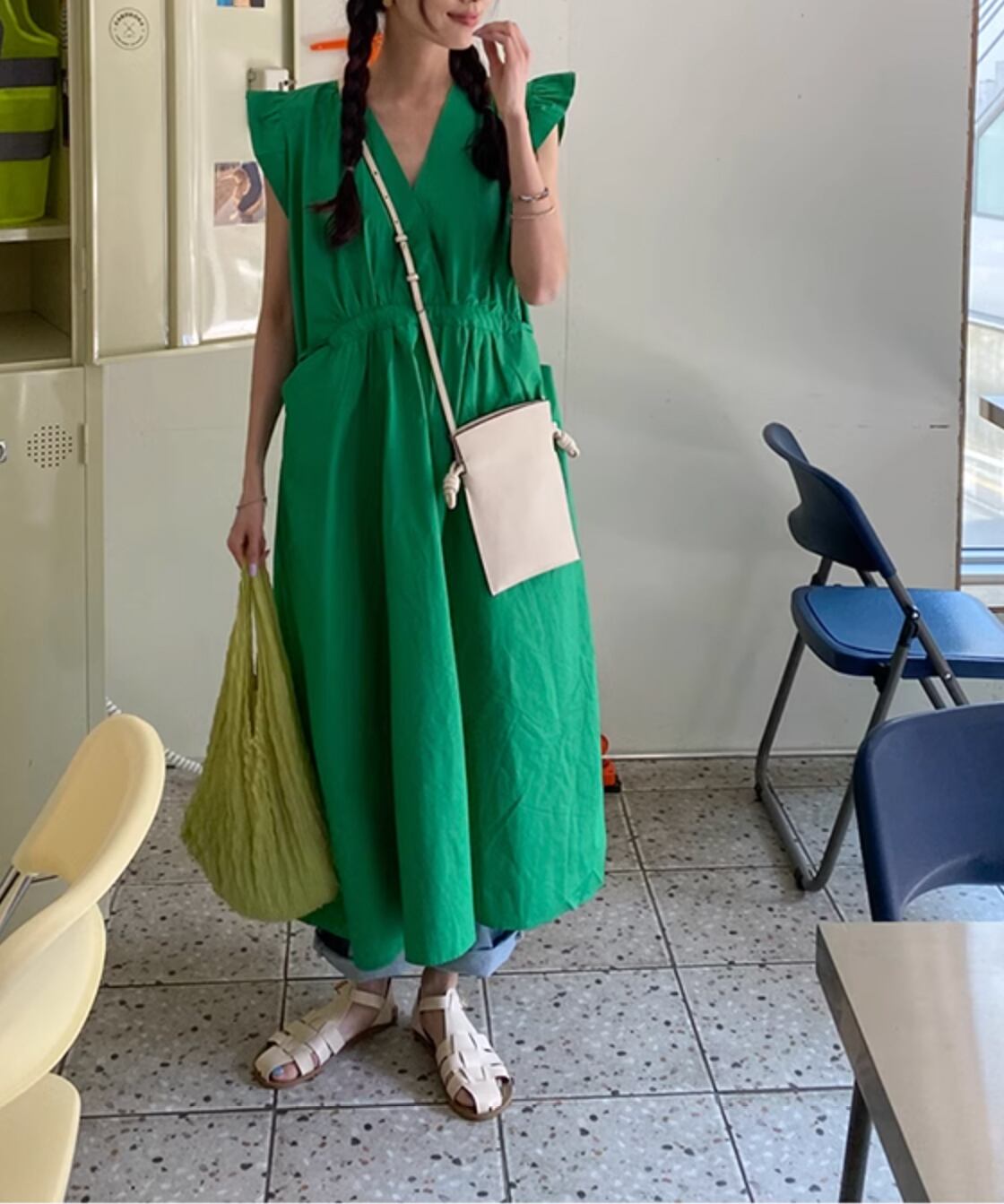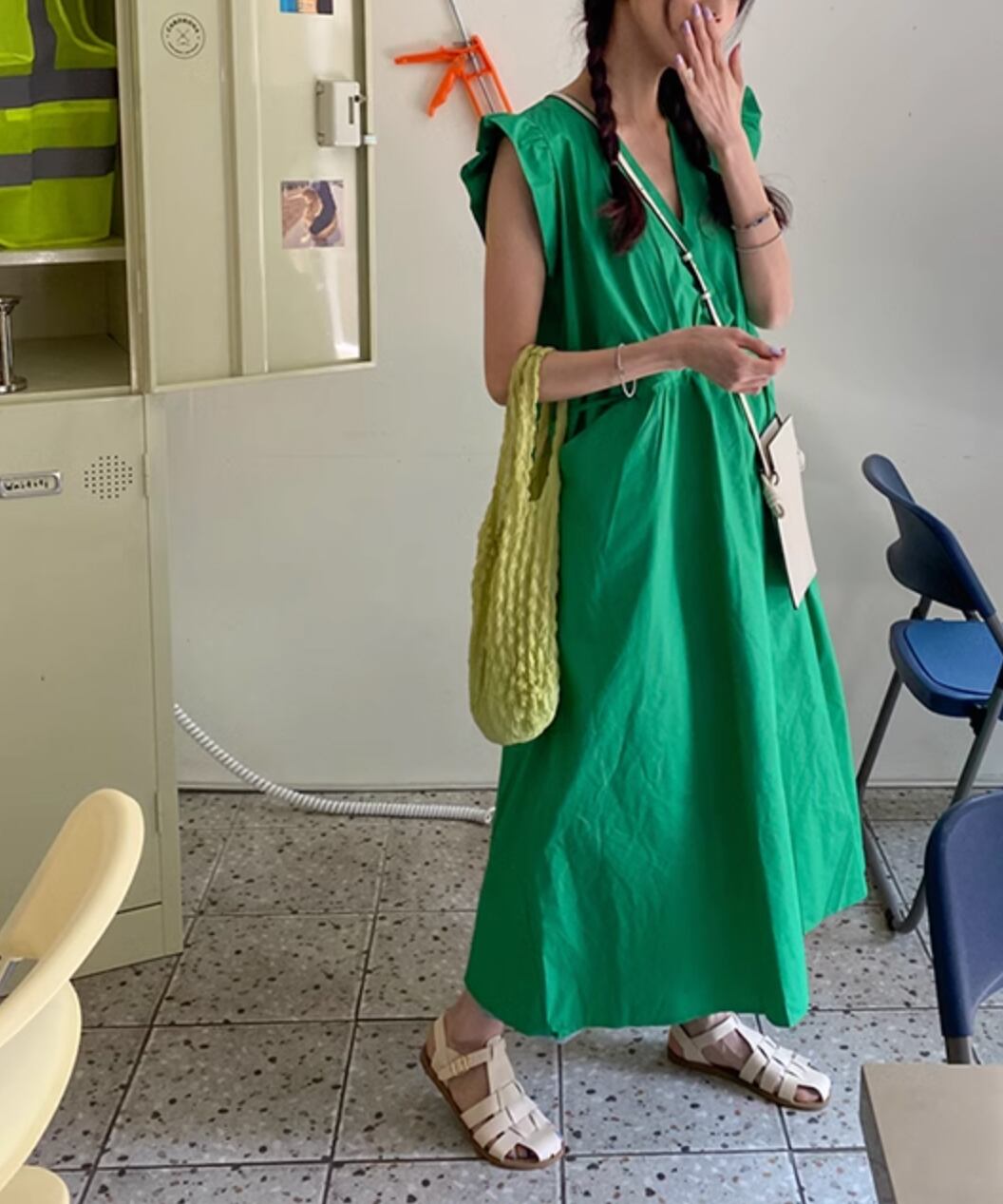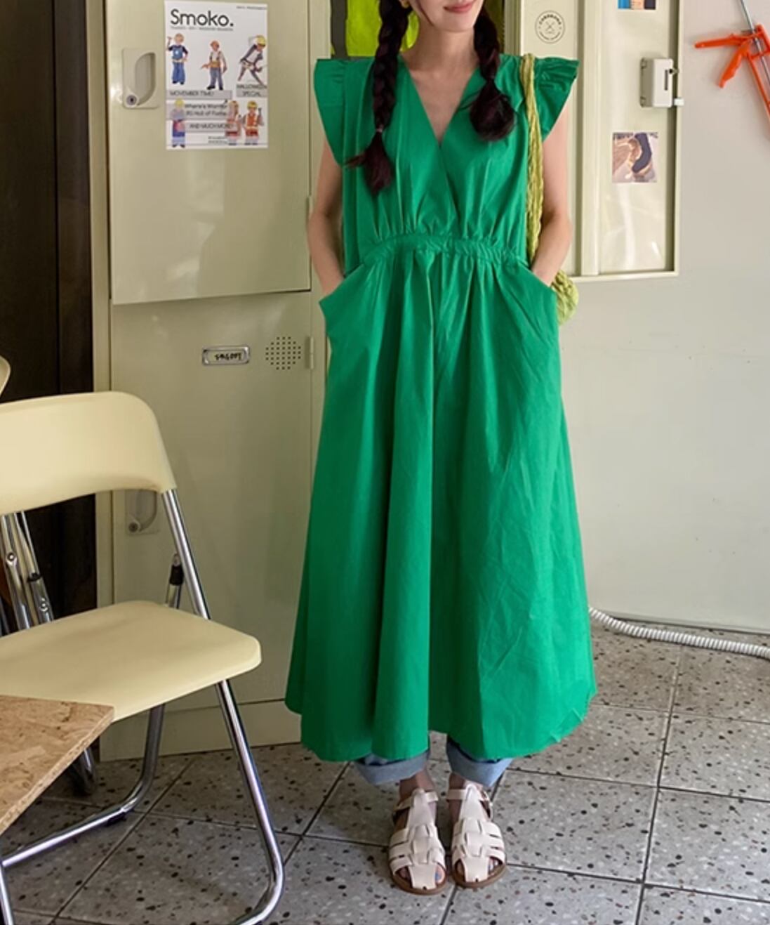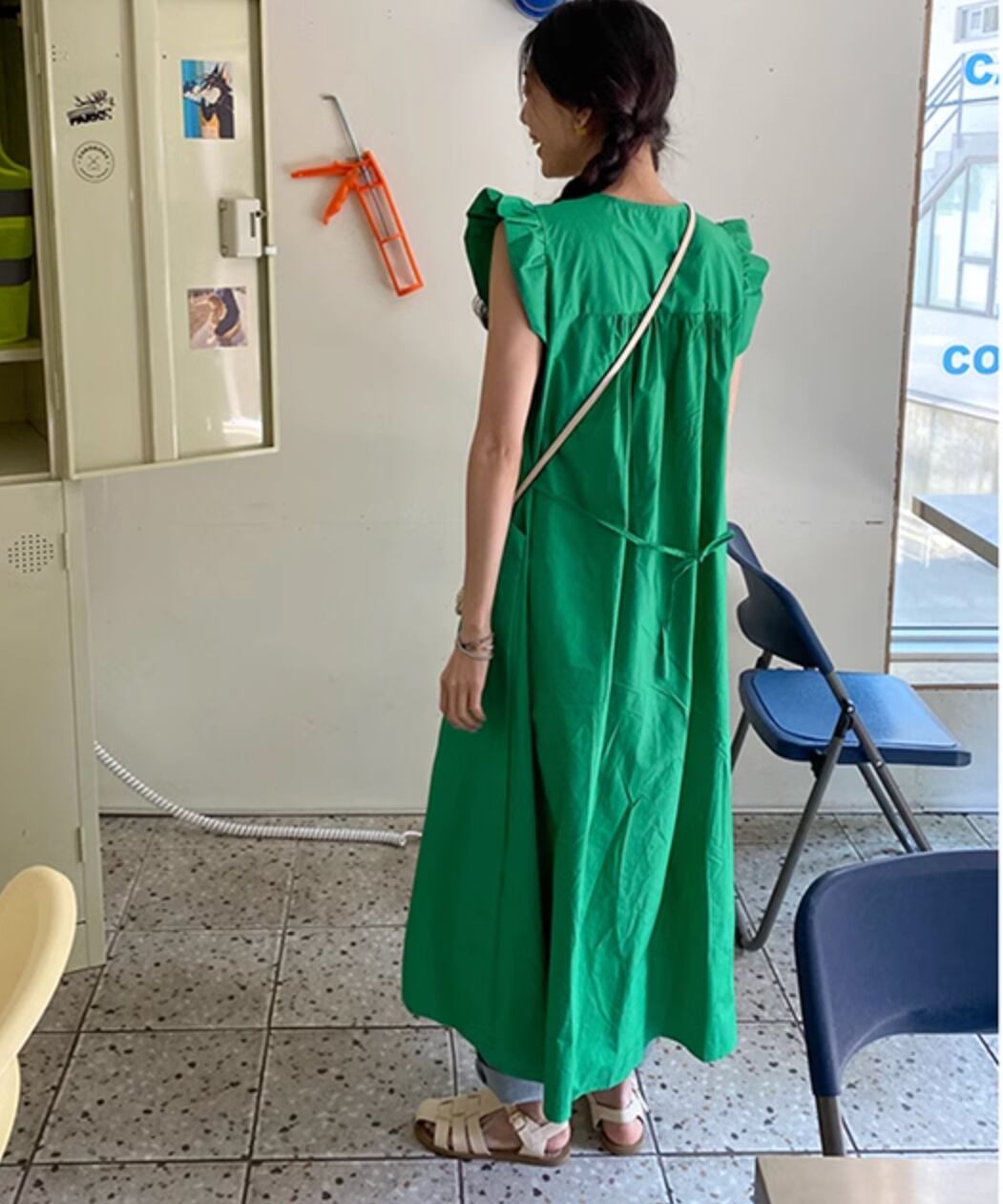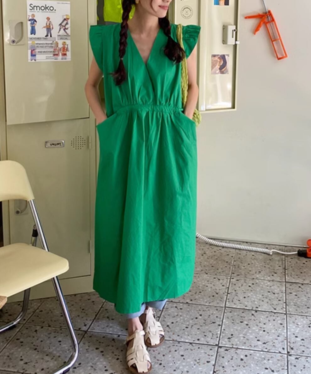 ウエストリボンノースリーブワンピース Q0076