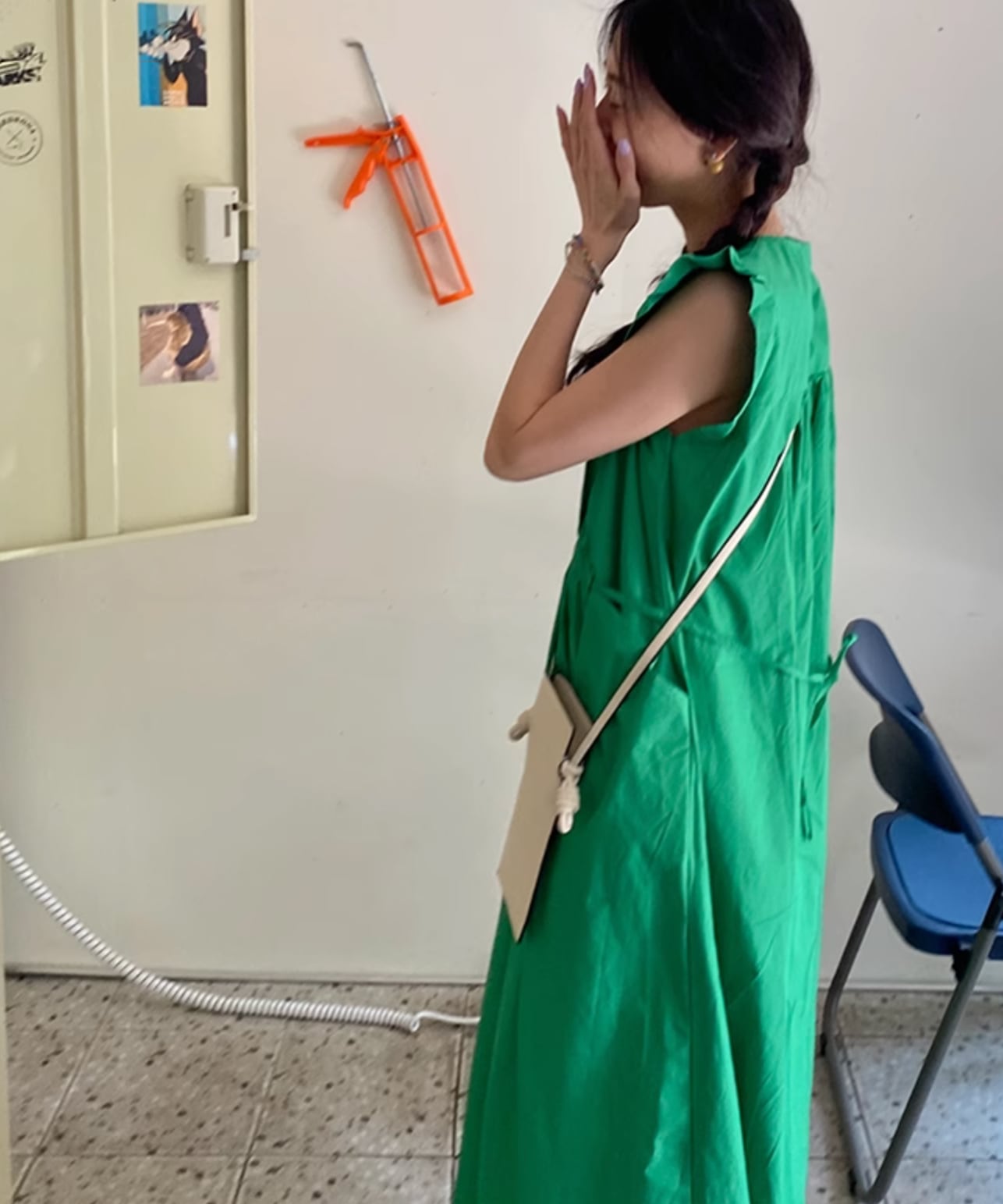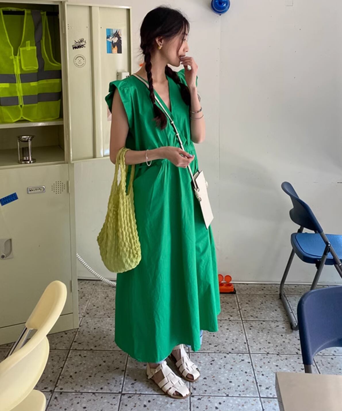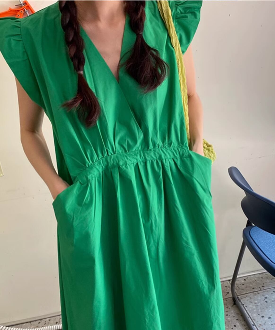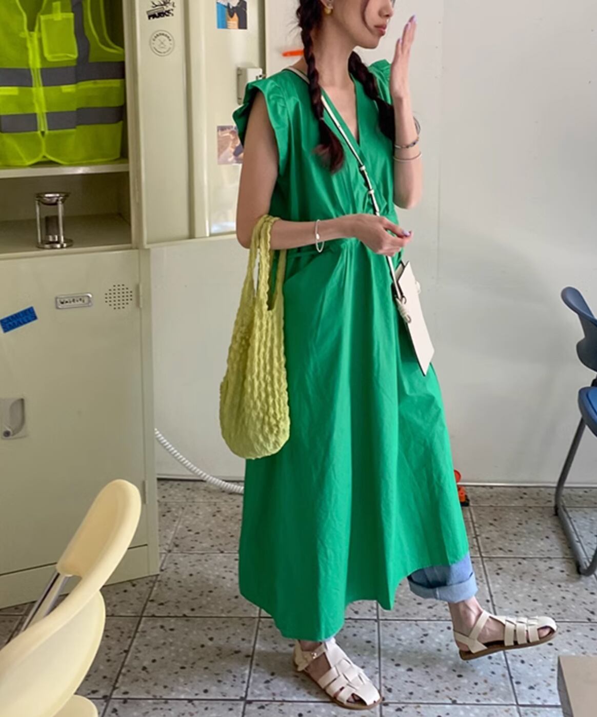 ウエストリボンノースリーブワンピース Q0076