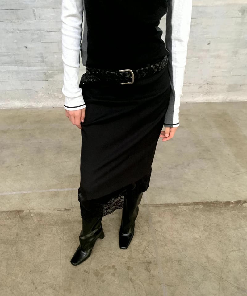 ハイウエストレースエッジサテンスカート p0125