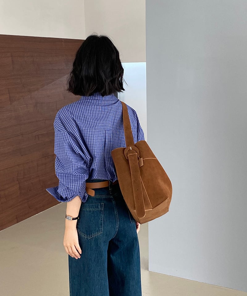 レトロブルーチェックルーズシャツ p0172