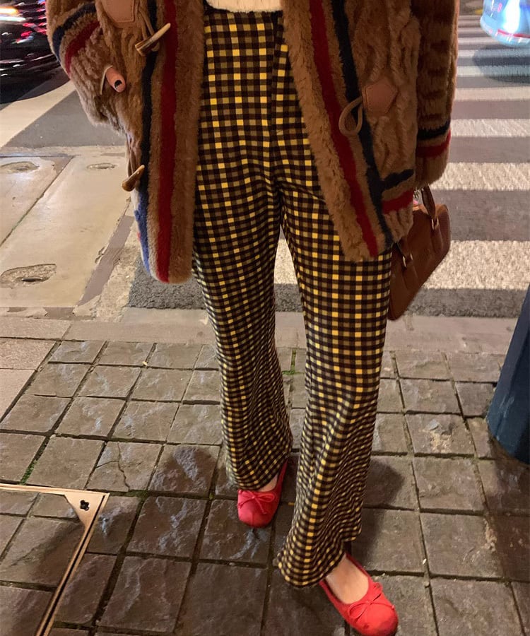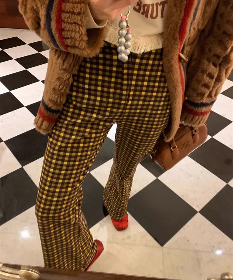レトロチェックフレアパンツ p0273